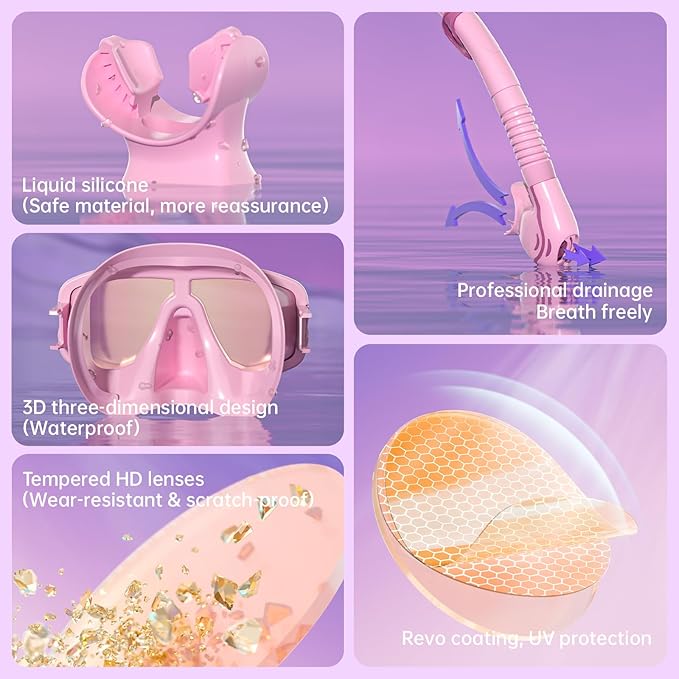 • Versatile for All Ages & Adventures-Whether it's a warm and pleasant seaside vacation snorkeling, daily practice in a clear swimming pool, or embarking on a joyful adventure at a water park, the WaterTime snorkeling kit is your ideal partner.
