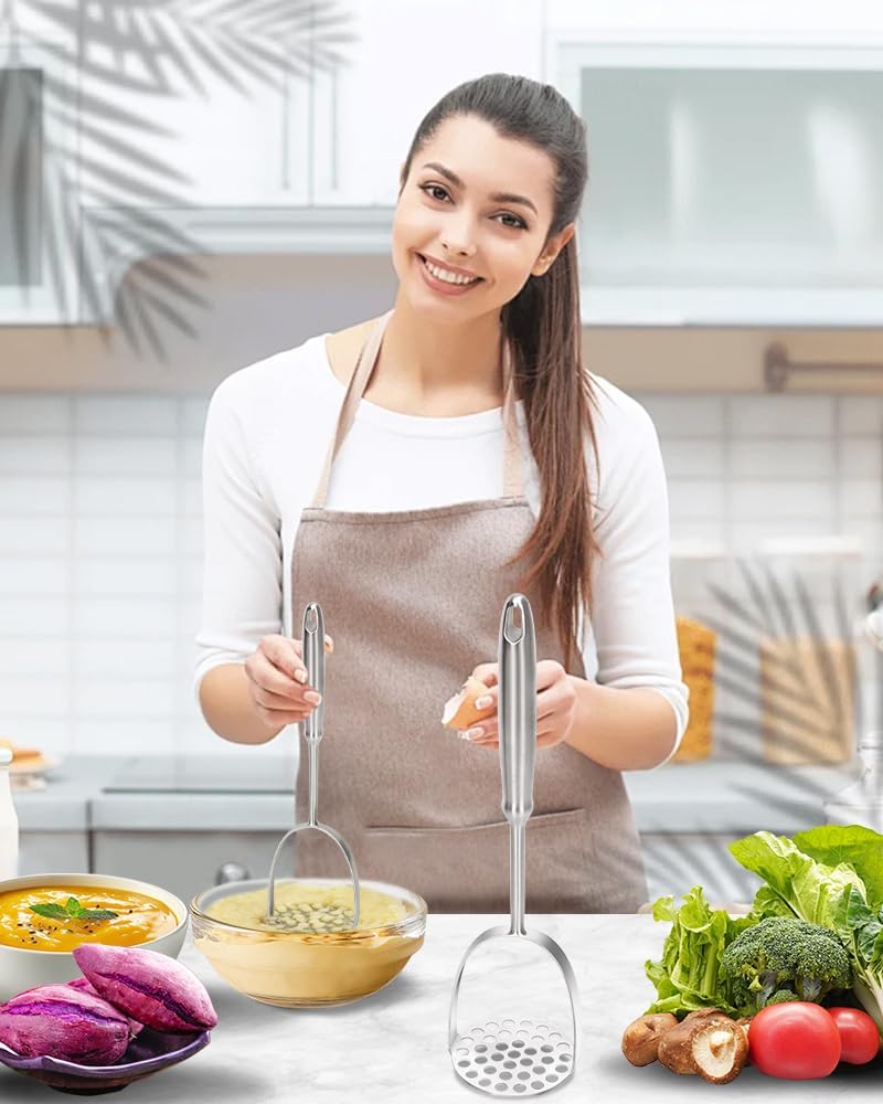 - EASY MASHING: Dual-Arc Design Naturally Distributes Hand Pressure for Effortless Mashing, even when crushing dense ingredients.