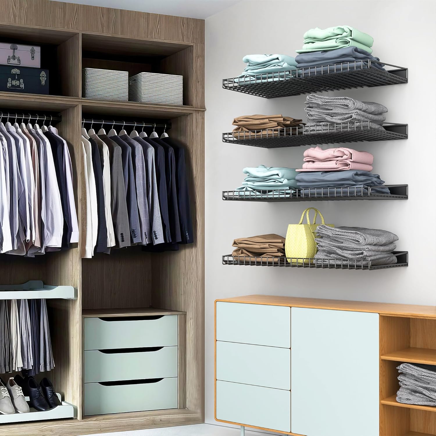 - Space Optimization: Maximize your garage space with these sturdy wall shelves, offering an efficient storage solution. Organize tools, equipment, and more, freeing up valuable floor space for your vehicles or other activities