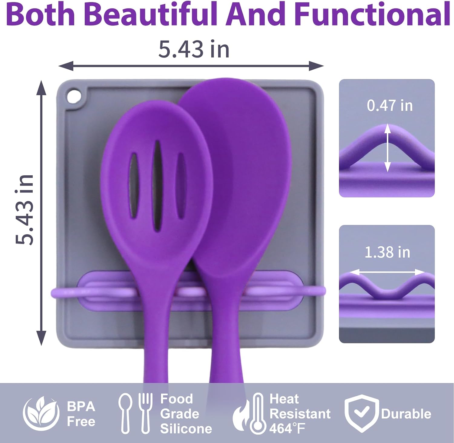 Silicone Spoon Rest for Stove, Heat-Resistant & BPA-Free, Non-Slip Kitchen Utensil Holder for Counter, Gray + Purple