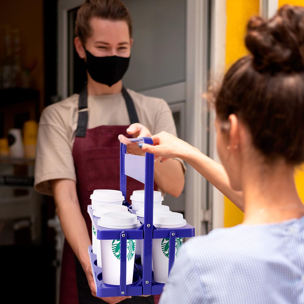 Bodaon 6 Cup Drink Carrier with Handle, Plastic Cup Carriers for Drinks, Drink Holder for Car, GrubHub/Eats Doordash Accessories, Portable Foldable Reusable Mobile, Use for Food Delivery Bag, Purple