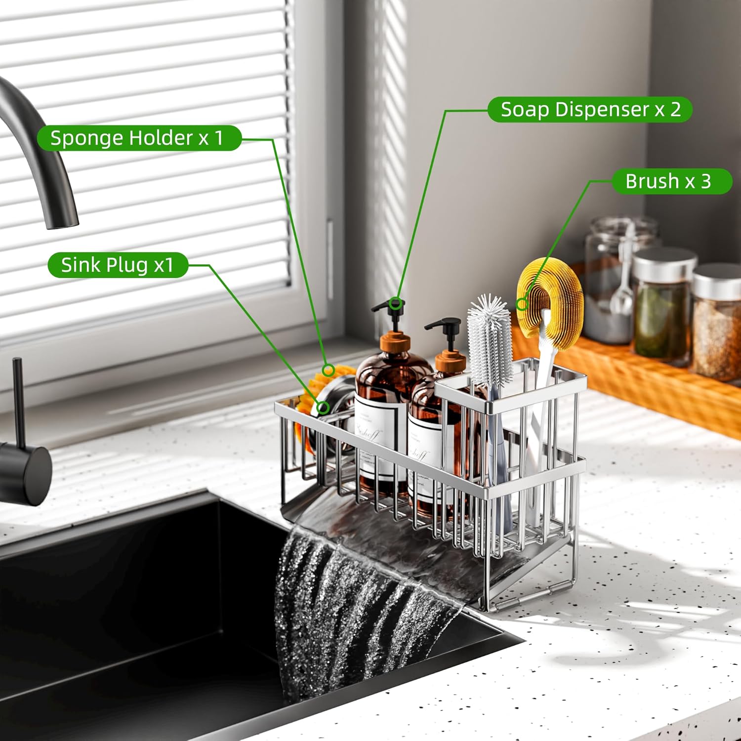 - 【PREMIUM STURDY MATERIAL】 Cisily kitchen sink organizer is made of premium stainless steel which can effectively prevent rust and deformation. And you can clean it easily by rinsing it under a running tap. Take the clutter out of your countertops.