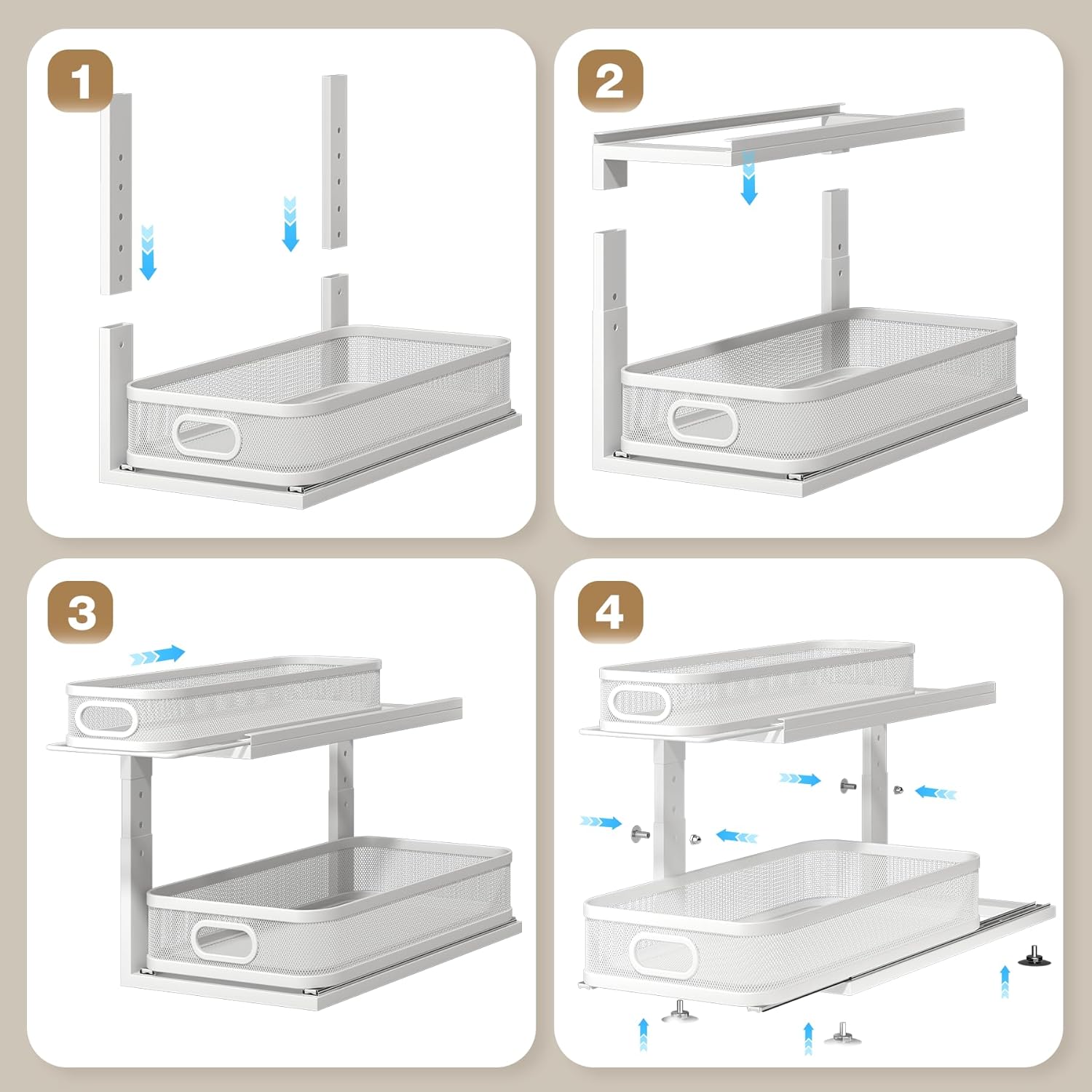 - 【Ultra-Smooth Glide】Pull out cabinet organizer features next-generation ball-bearing slides.Premium metal rails with ball bearings ensure a silky-smooth, noise-free glide, effortlessly handling heavy loads for the ultimate pull-out experience.