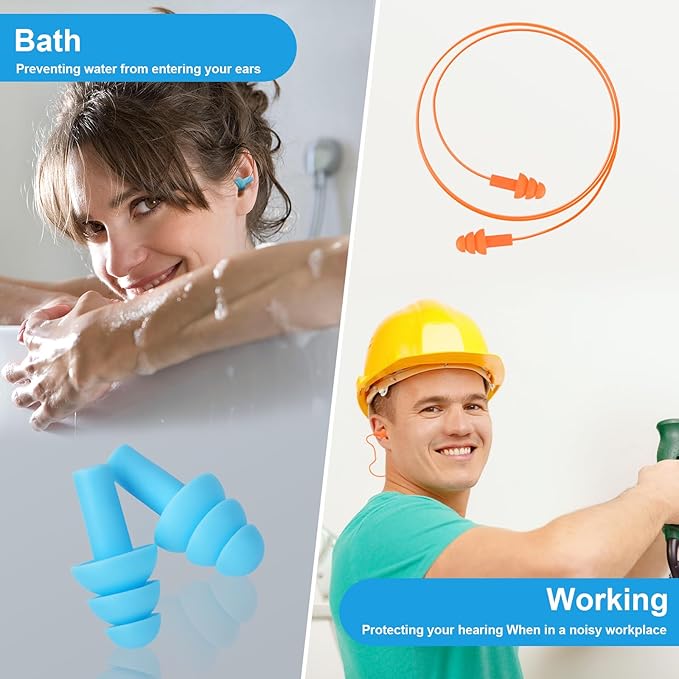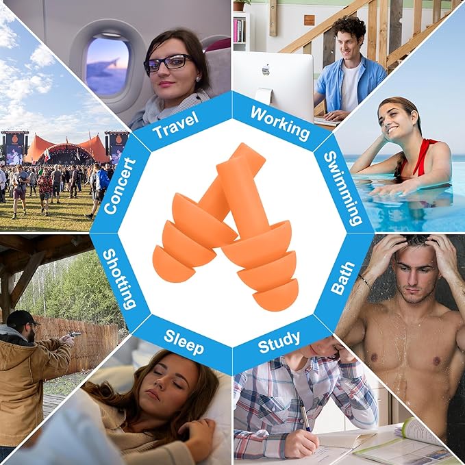 • Triple Protection - 3 layer design improves sealing ability and comfort, effectively reduces noise and has high water resistance. These earplugs are very suitable for sleeping, swimming, shooting, studying, noisy work environments, concerts, motorcycles, traveling by plane and loud events.