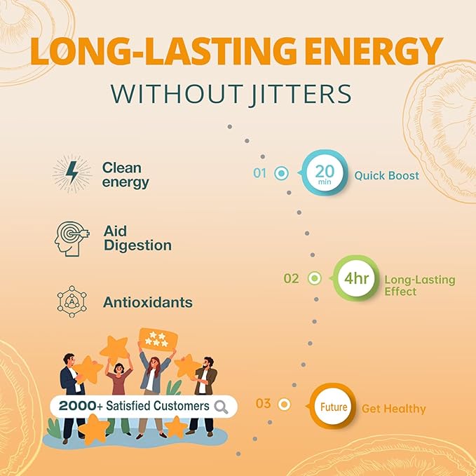 • Experience the Nutrient-Rich Mushroom Coffee: Enjoy medium roast Arabica instant coffee infused with extracts from 14 functional mushrooms, including Reishi, Turkey Tail, Lion’s Mane, Chaga, Cordyceps, Maitake, Poria Cocos, Black Fungus, Mesima, Black Fungus, Oster Mushroom, Shiitake Mushroom, Royal sun agaricus, White button mushroom and Tremella. This blend provides clean energy, mental focus, and immune support.