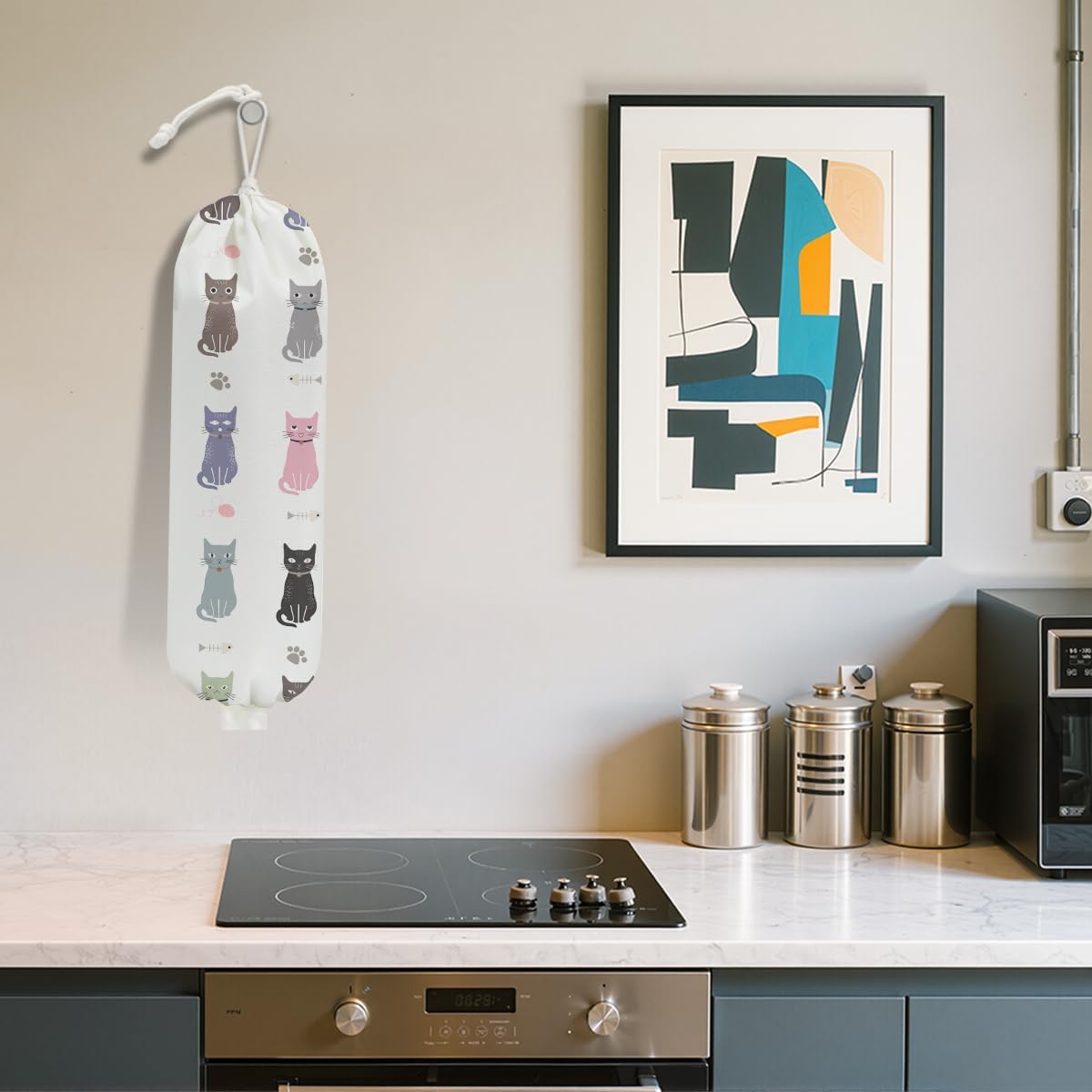 Cat Plastic Bag Holder, Wall Mount Grocery Bag Holder for Plastic Bags, Large Reusable Grocery Bags Organizer Storage Dispenser for Home Kitchen Pantry Decor, Cat Lover Gifts for Women