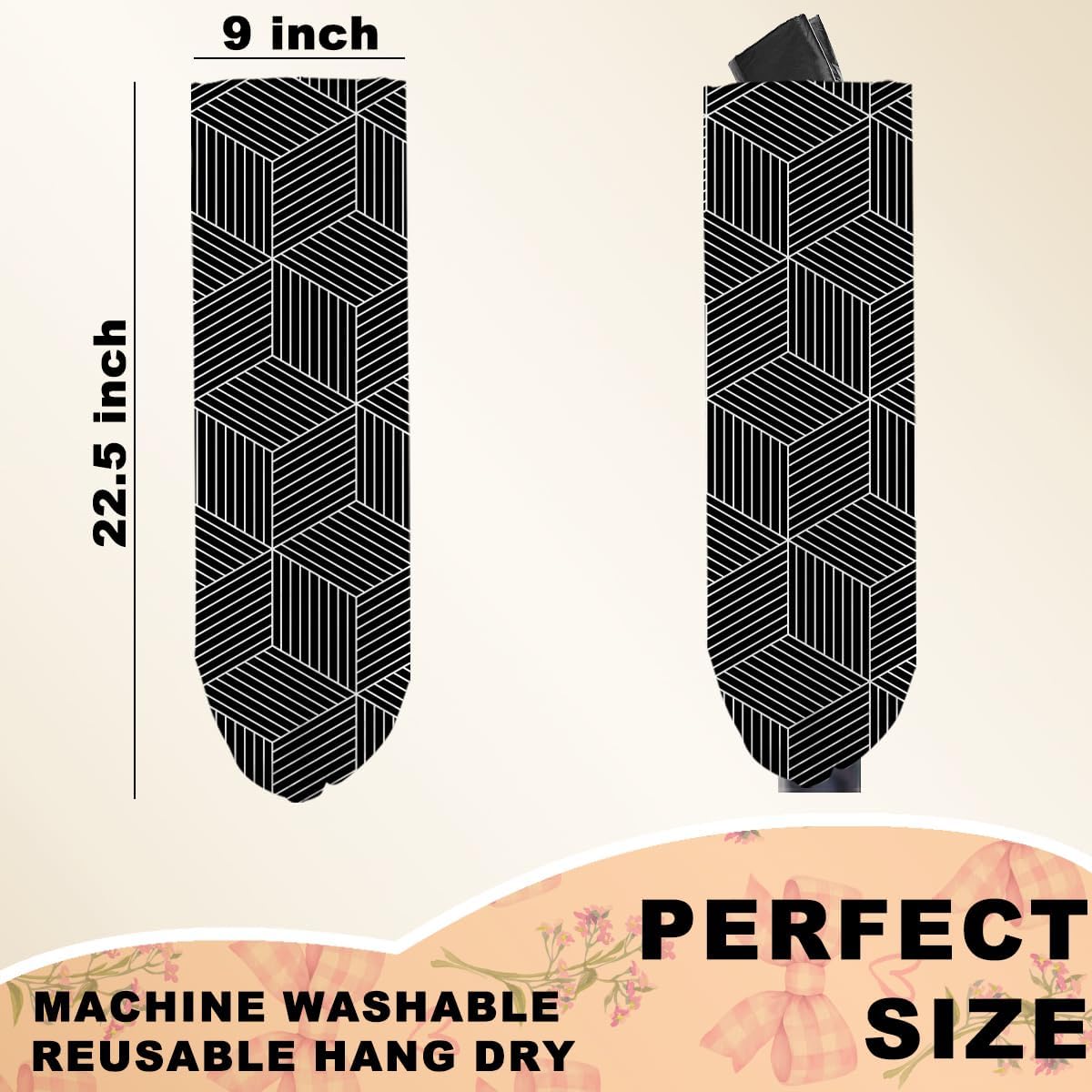 2Pcs Gray Geometric Lines Plastic Bag Holder, Wall Mount Grocery Bag Holder for Plastic Bags, Black Cube Abstract Art Reusable Organizer Grocery Bags with Drawstring for Kitchen Home Pantry
