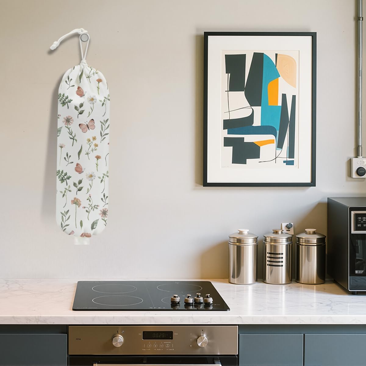 Boho Floral Plastic Bag Holder, Wall Mount Trash Bag Holder, Rustic Butterfly Large Reusable Grocery Bags Storage Dispenser for Home Kitchen Pantry Farmhouse, Flower Gifts for Women, 22.5x9 Inch
