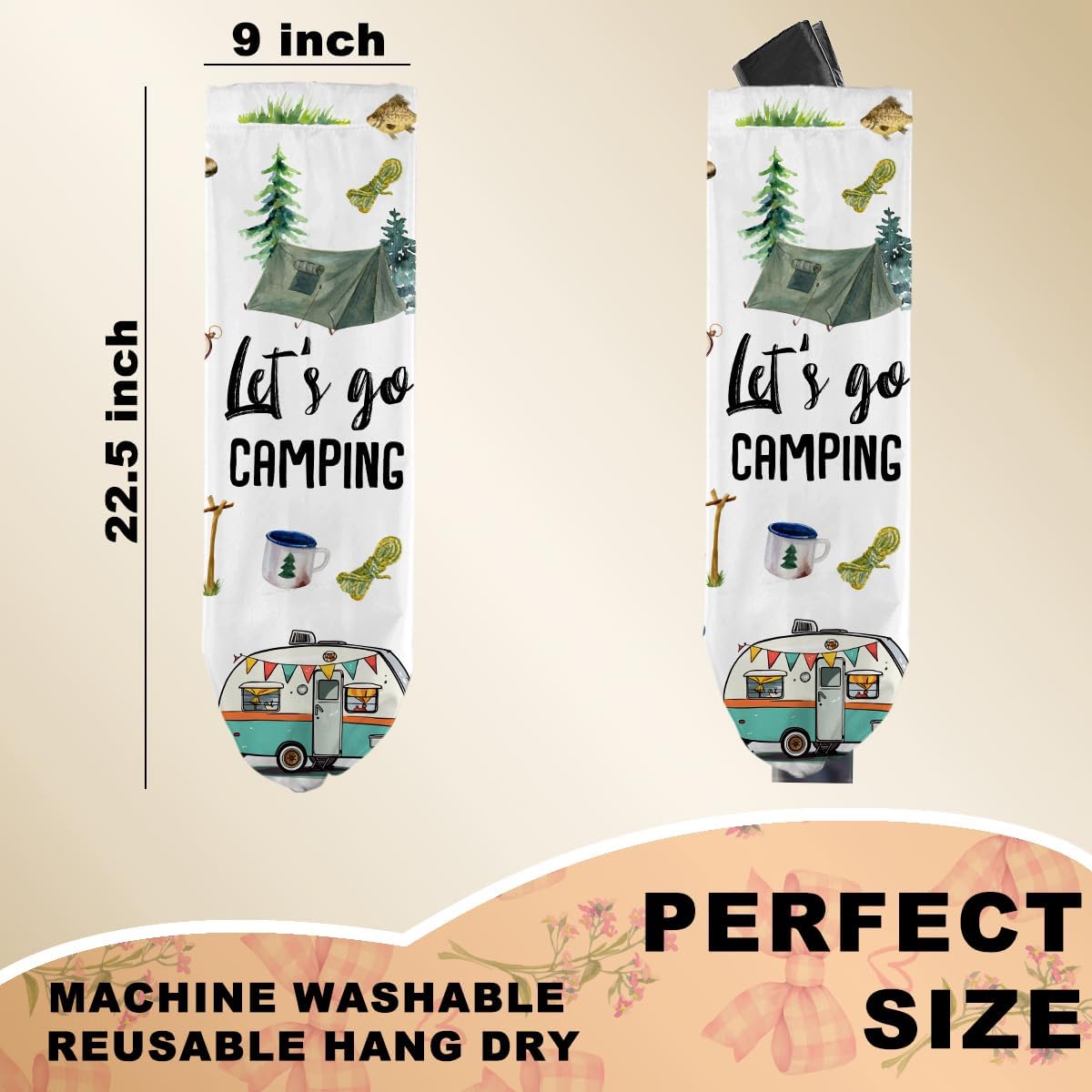 Camping Plastic Bag Holder, Wall Mount Trash Bag Holder, Tent Rv Bonfire Large Reusable Grocery Bags Organizer Storage Dispenser for Camp Kitchen Pantry, Camping Gifts for Women Men Camper