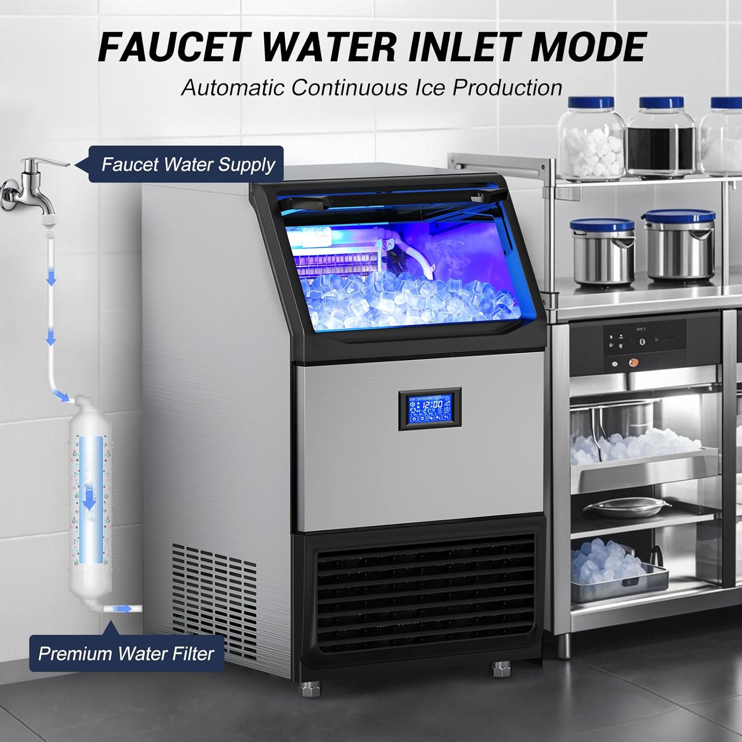 450Lbs/24H Under Counter Commercial Ice Machine with 160LBS Large Storage Bin, Stainless Steel Freestanding Ice Maker for Home Bar Cafe, Include Water Filter and Ice Scoop,Self Cleaning