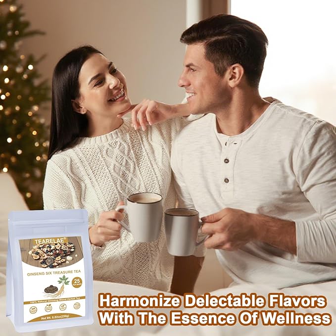 TEARELAE - Ginseng Six Treasure Tea - 10g x 25 Count - Traditional Chinese Herbal Tea for Kidney & Liver Support, 7 Precious Ingredients - Natural Herbal Blend for Daily Wellness - Caffeine-free