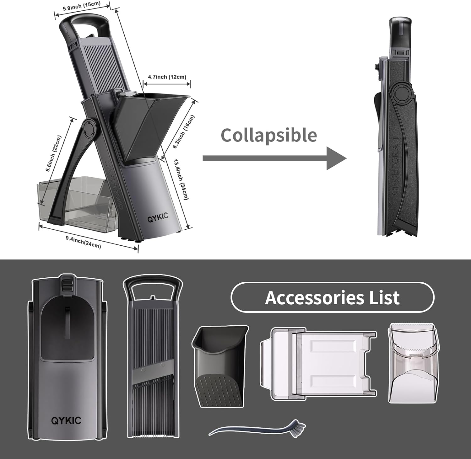 - ✅AFTER-SALE WARRANTY: We want to make your life easier, better, and more enjoyable. If you're not happy with your vegetable chopper and slicer, we'll be happy to replace it. Please read the instruction manual carefully before using the QYKIC food slicer and chopper. If you have any questions or problems, please message the seller through Amazon and we'll reply within 24 hours. ONCE FOR ALL.
