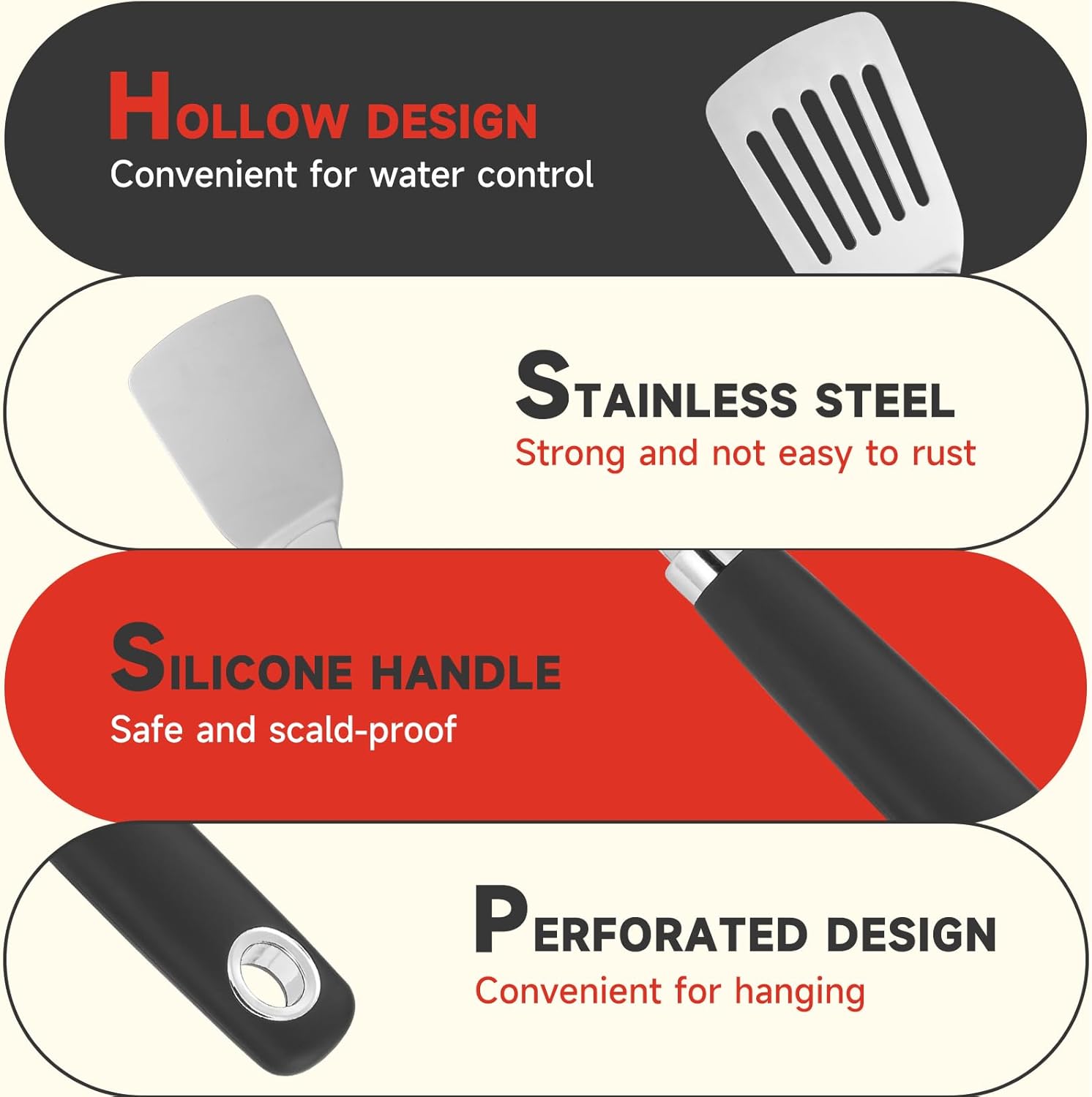 - 【Versatile Use】spatula stainless steel Perfect for cooking, flipping, and lifting, this metal spatula set excels in a variety of kitchen tasks. Whether you're preparing meat or vegetables, it's an essential tool for every cooking enthusiast