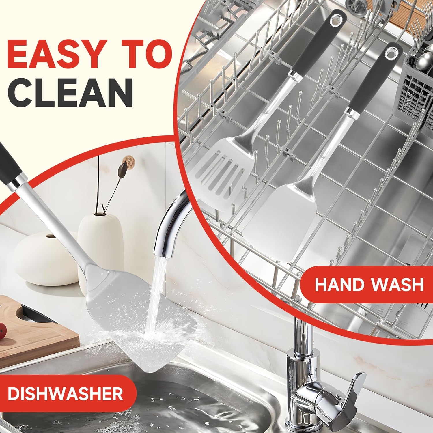 - 【Comfortable Grip】stainless steel spatula Designed with an ergonomic handle, these wok utensils provide a comfortable and secure grip,metal spatula making your cooking experience more enjoyable and effortless