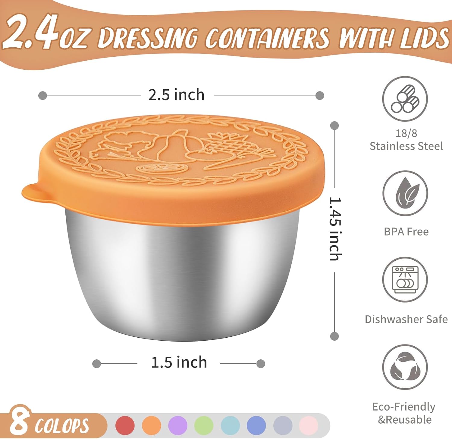 - PREMIUM FOOD-GRADE MATERIAL: Crafted from 18/8 stainless steel sauce cup and BPA, non-toxic silicone lids. Reusable for completely replaces single-use plastic and saves money. Plus, they are fully dishwasher-safe for easy cleaning and fridge-safe to extend condiment freshness. Healthier for you, better for the environment