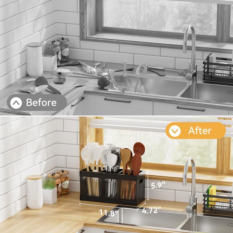 - 【Versatile Storage Solution 】: Perfect for organizing various kitchen utensils including spoons, spatulas, and cooking tools. The spacious compartments accommodate large utensils while keeping them easily accessible
