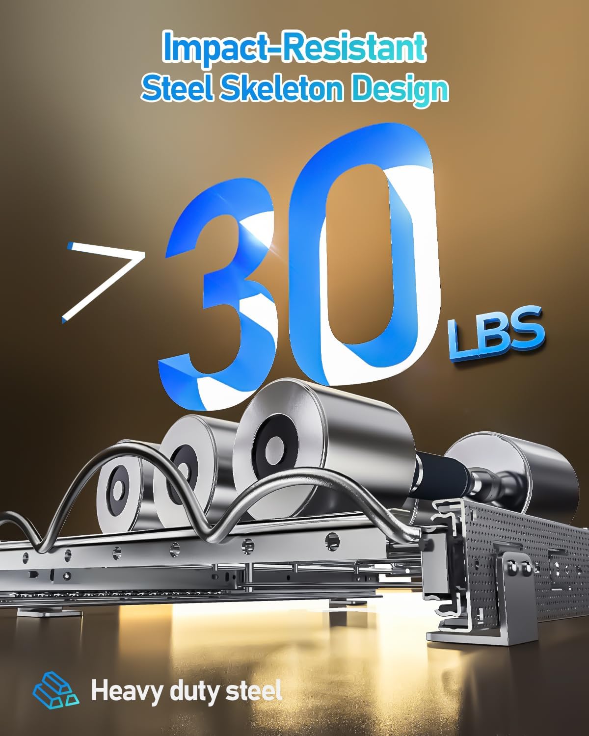 - 【Full Extension, No Dead Space】: The Kitchen Pot and Pan Organizer system uses a 3-stage ball bearing mechanism for smooth operation and strong support (holds over 30 lbs). Reach everything in deep cabinets with ease.