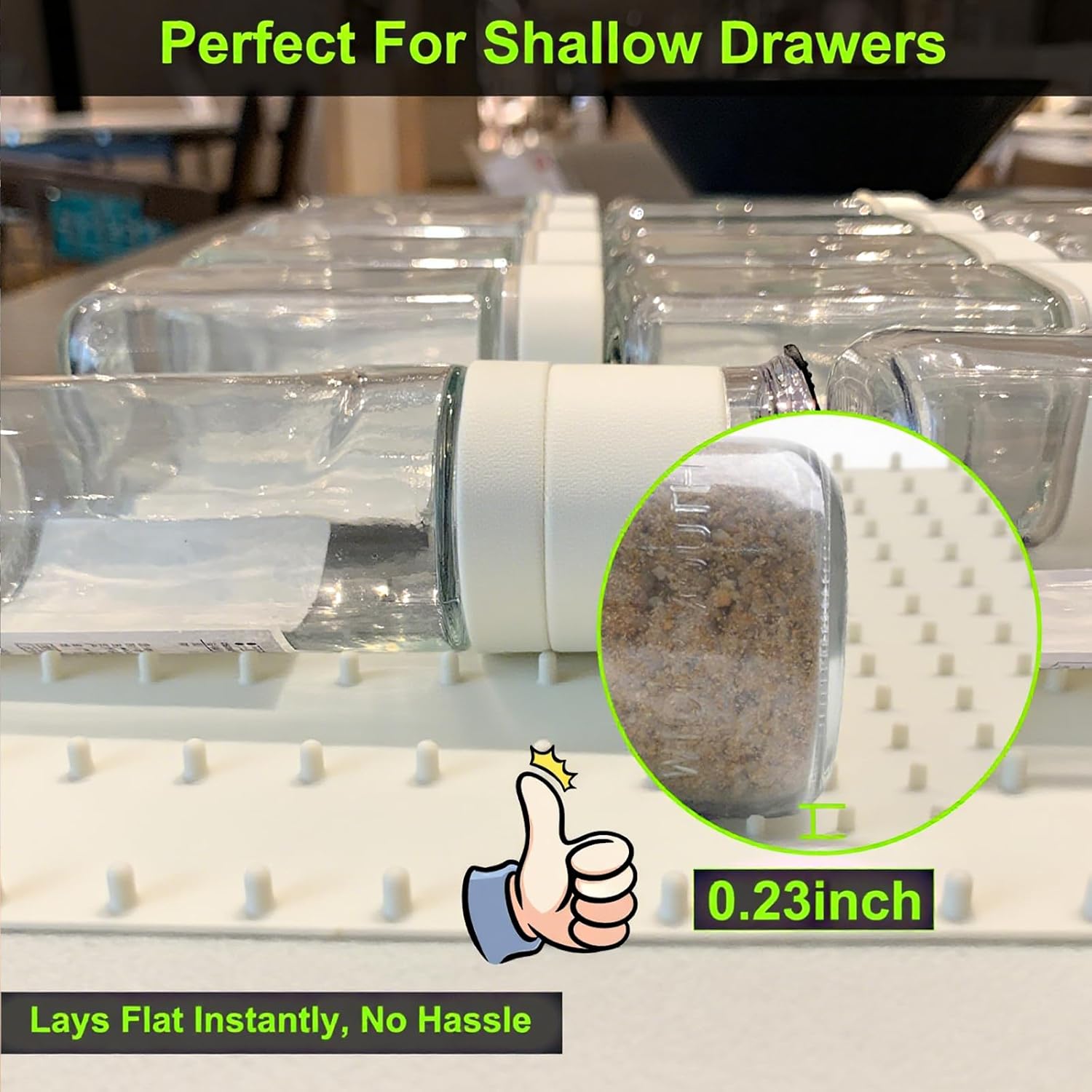 Gosmol Spice Drawer Organizer insert, Adjustable & Non-Slip Silicone Spice Drawer Liner for Seasoning Jars and Spice Bottles, Spice Rack, Set of 2-Pearl
