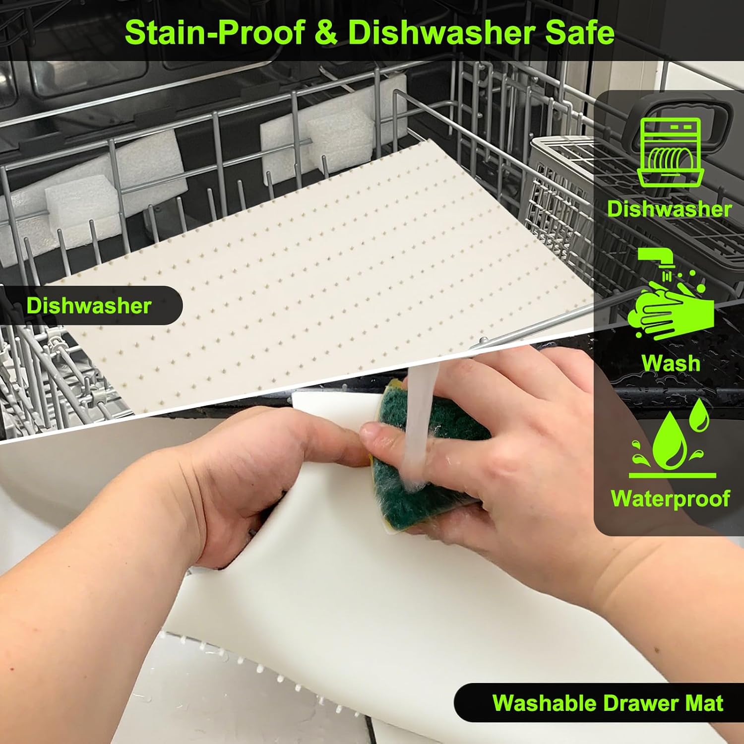 Gosmol Spice Drawer Organizer insert, Adjustable & Non-Slip Silicone Spice Drawer Liner, in Drawer Spice Organizer for Seasoning Jars and Spices Bottles Spice Rack -Pearl