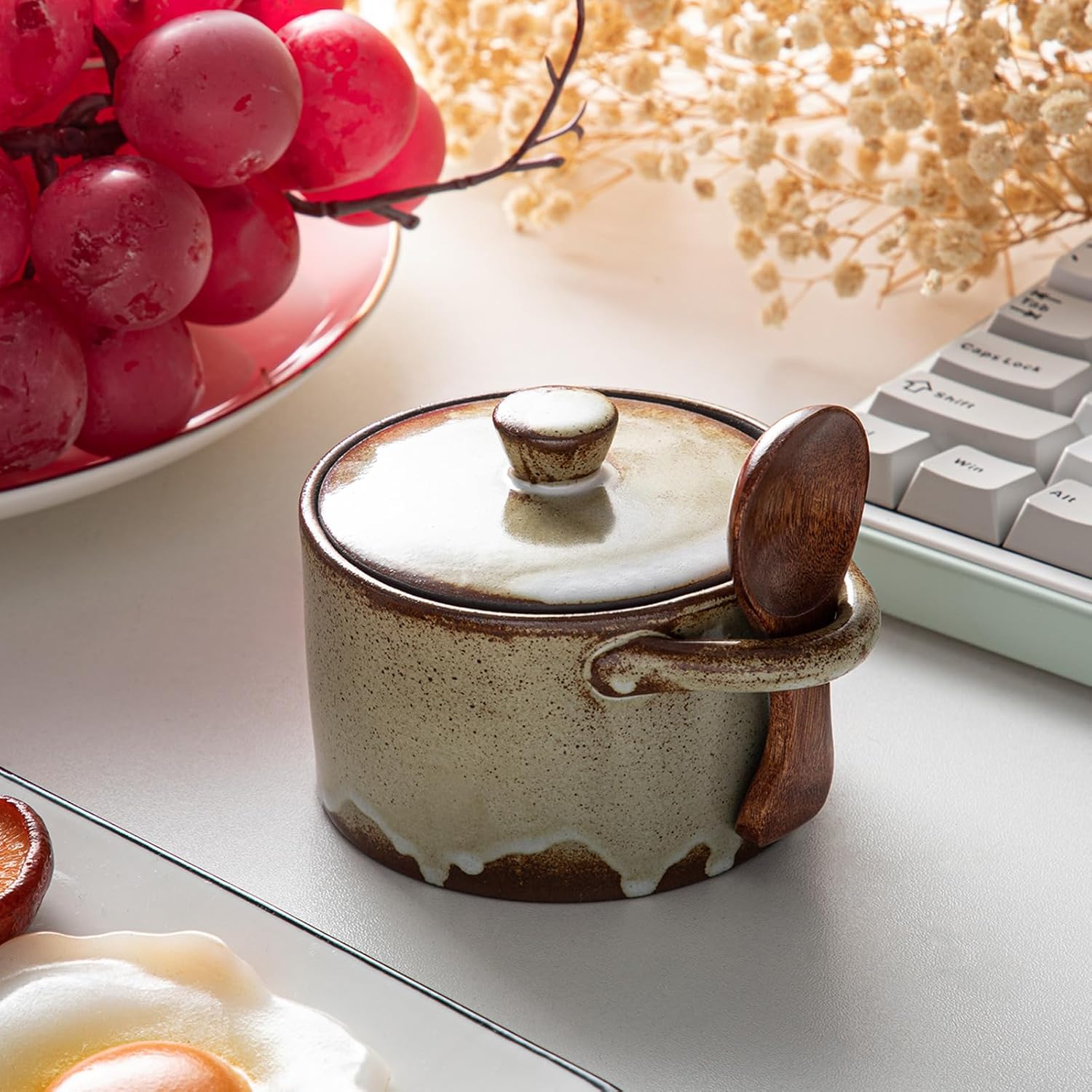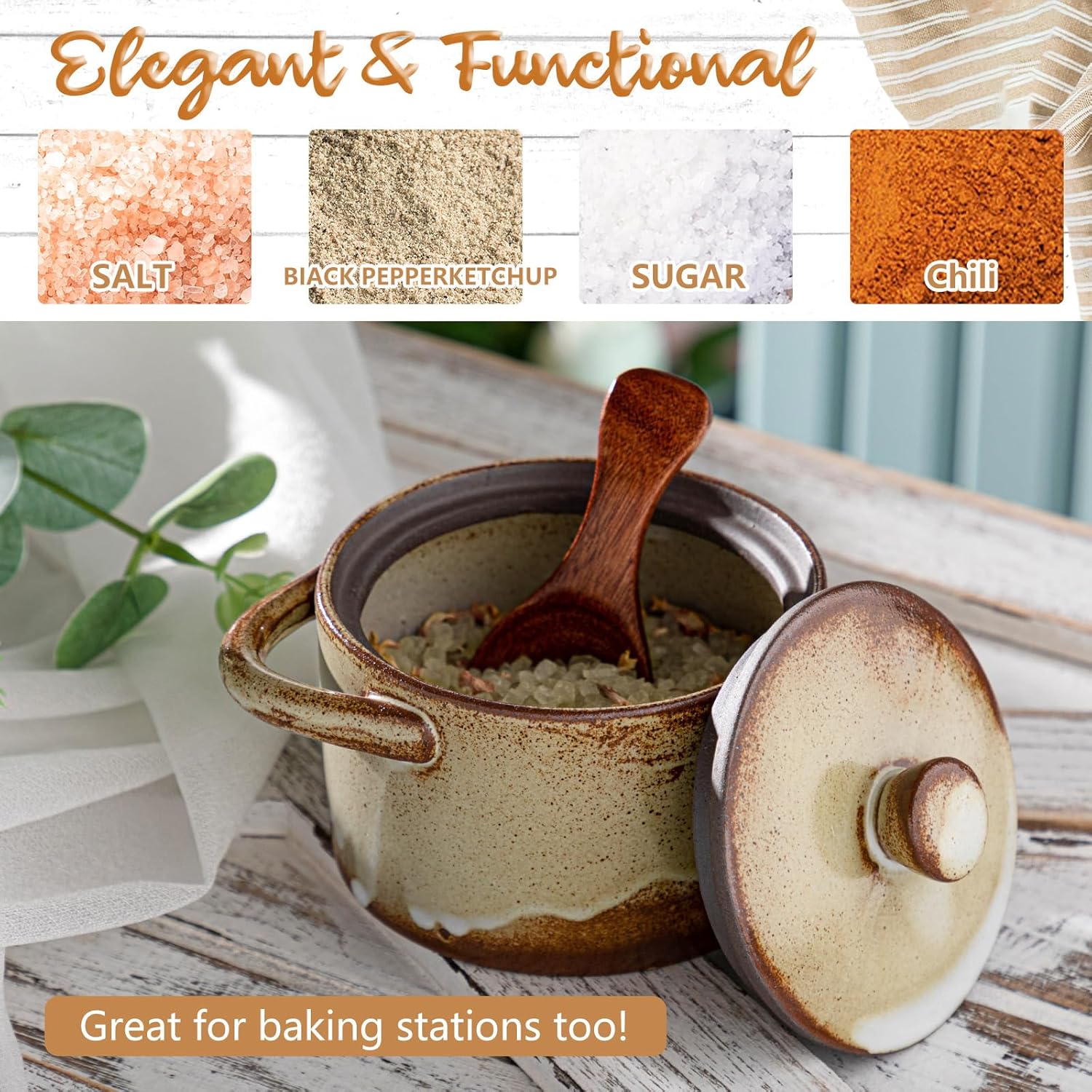 - Reliable Materials: salt bowl with lid is crafted from ceramic, complemented by a sturdy wooden lid, this durable piece promises longevity; Its robust build ensures resistance to daily wear and tear, making it a reliable choice for your spice storage needs