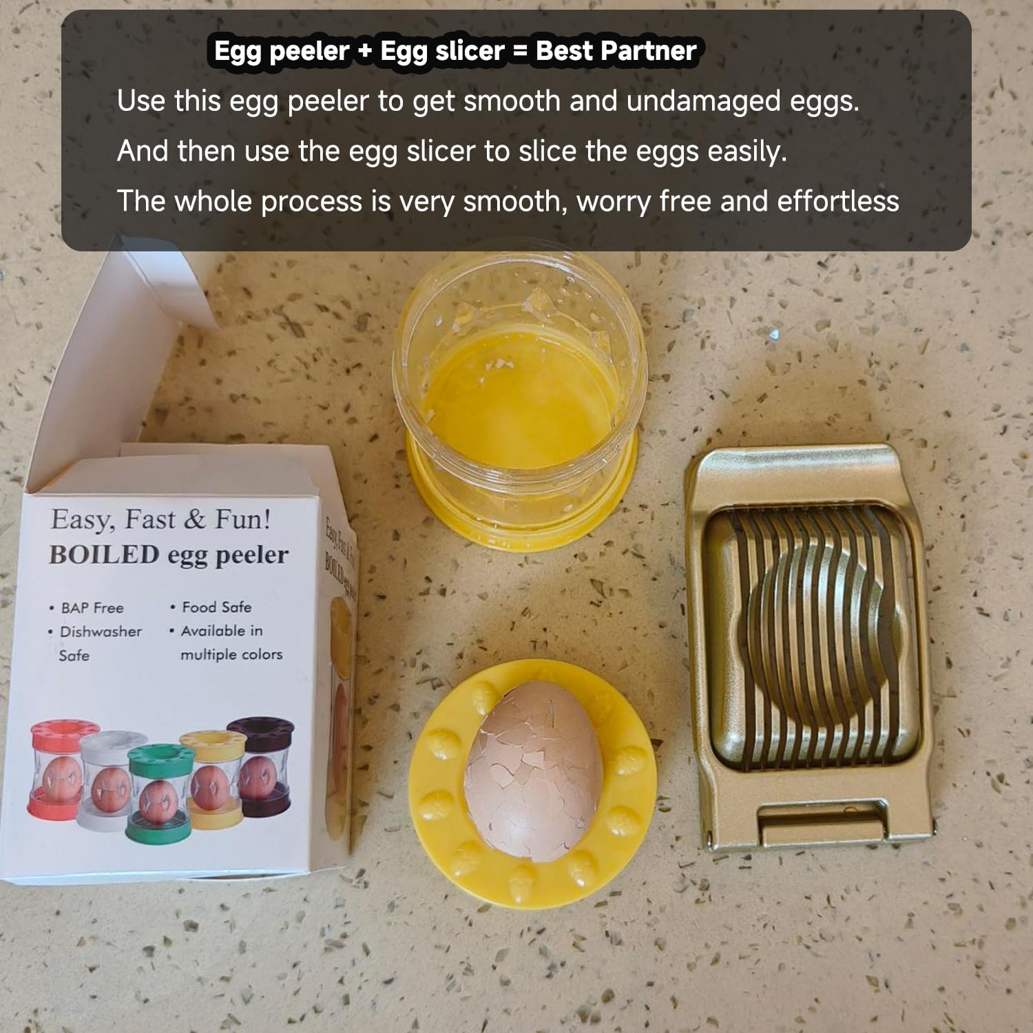 - Best partner set : Hard boiled egg peeler + slicer