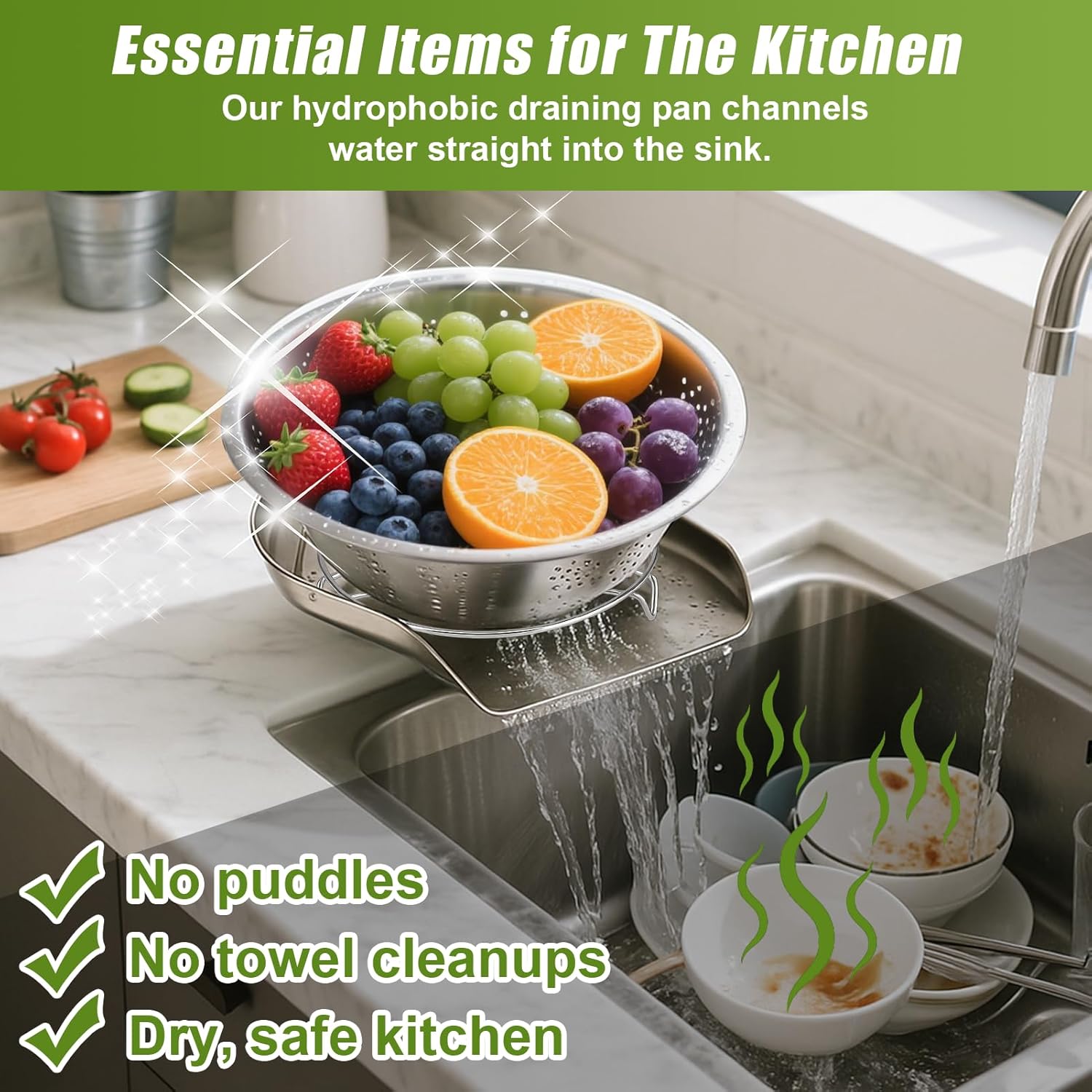- Premium Stainless Steel Material – Built with durable stainless steel, this colander self-drainer base is sturdy, rust-resistant, and an eco-friendly alternative to plastic kitchen accessories.