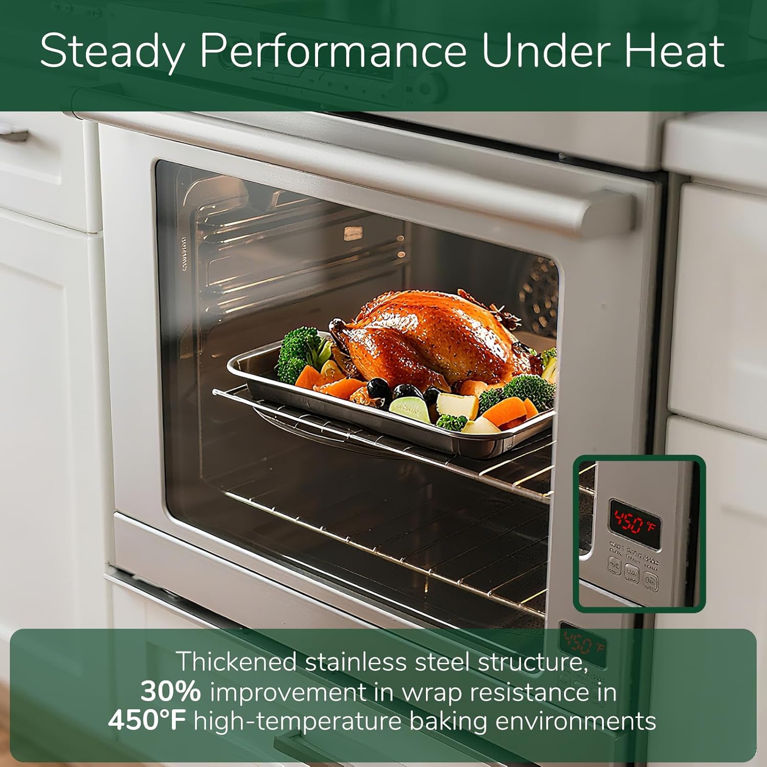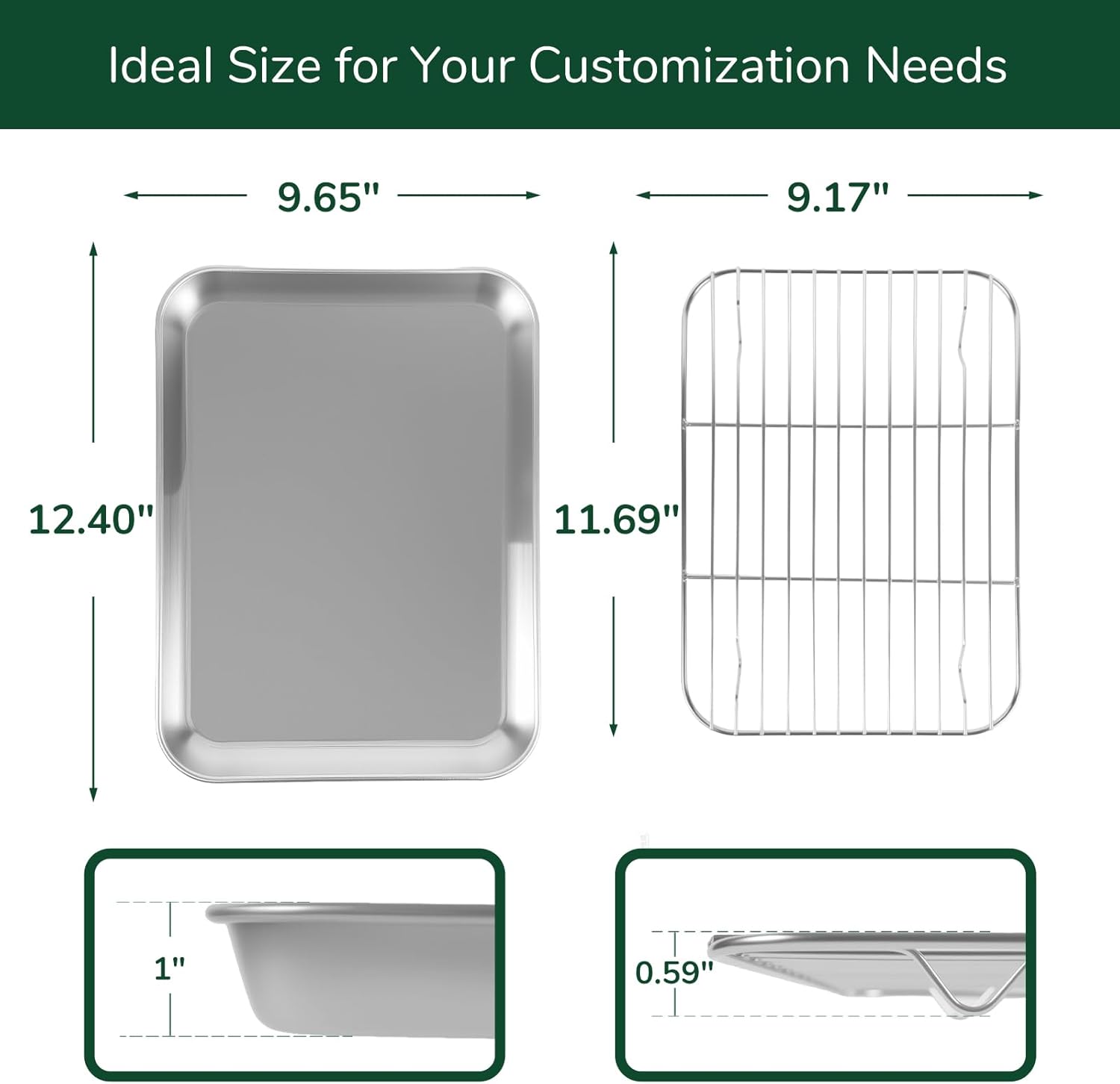18/0 Stainless Steel Baking Sheet with Cooling Rack, 12.4 Inch Oven-Safe Non-Toxic Cookie Sheets for Baking, Coating Free & Rust Resistant for Healthy Family Baking, Easy to Clean, Heavy Duty