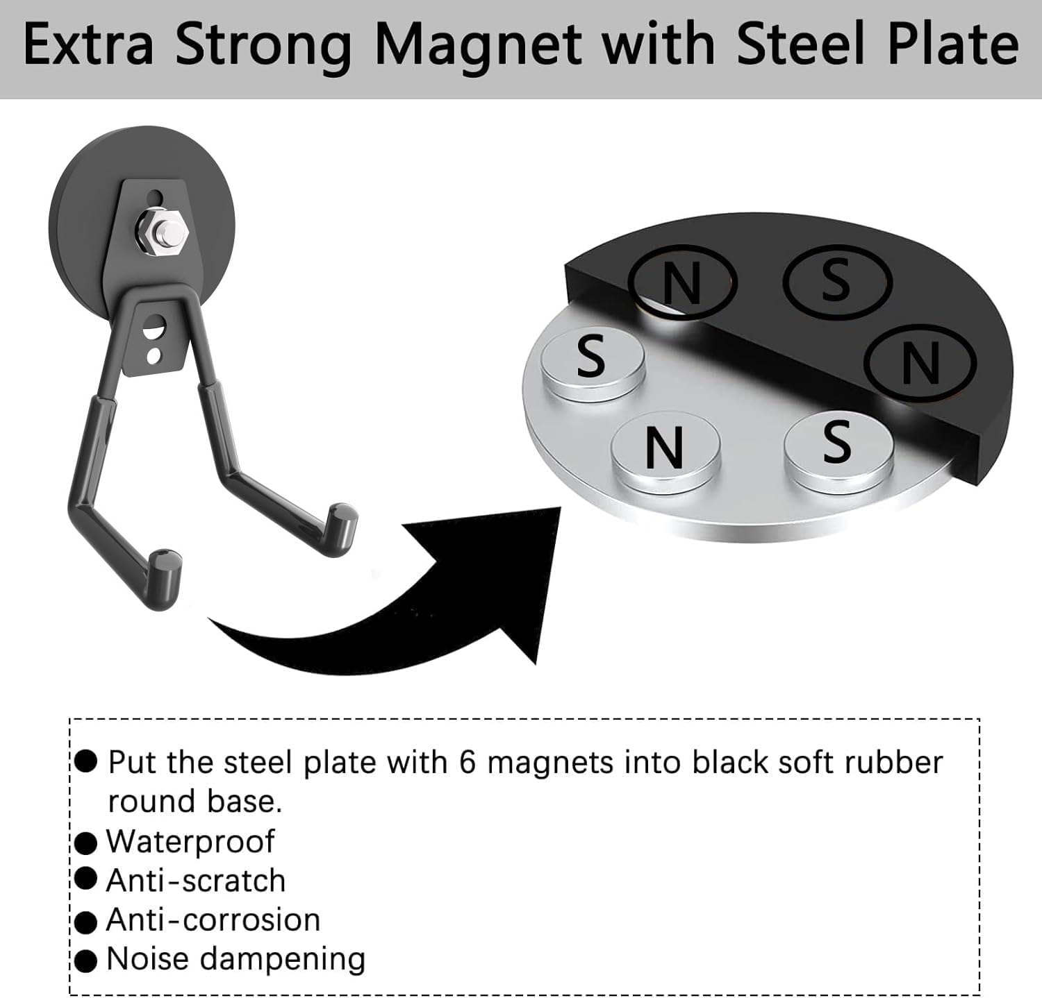 - 🧲[No-Scratch Magnetic Hooks]: These hooks are tough and long-lasting. The round, black, non-slip rubber coating on the bottom keeps things in place, protects surfaces from scratches, and prevents slipping and rusting. They work great both indoors and outdoors.