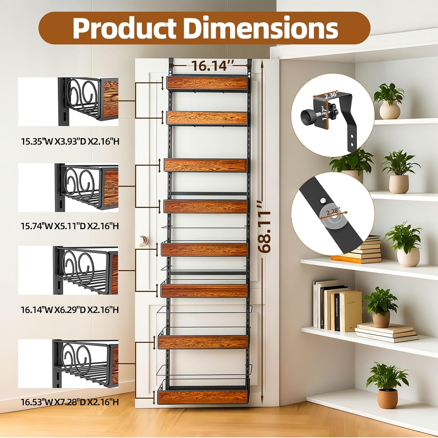 - Organizes Every Room: From spices to shampoo bottles, this door shelf accommodates a variety of items in any room. Widely used in kitchens, pantries, bathrooms, and garages