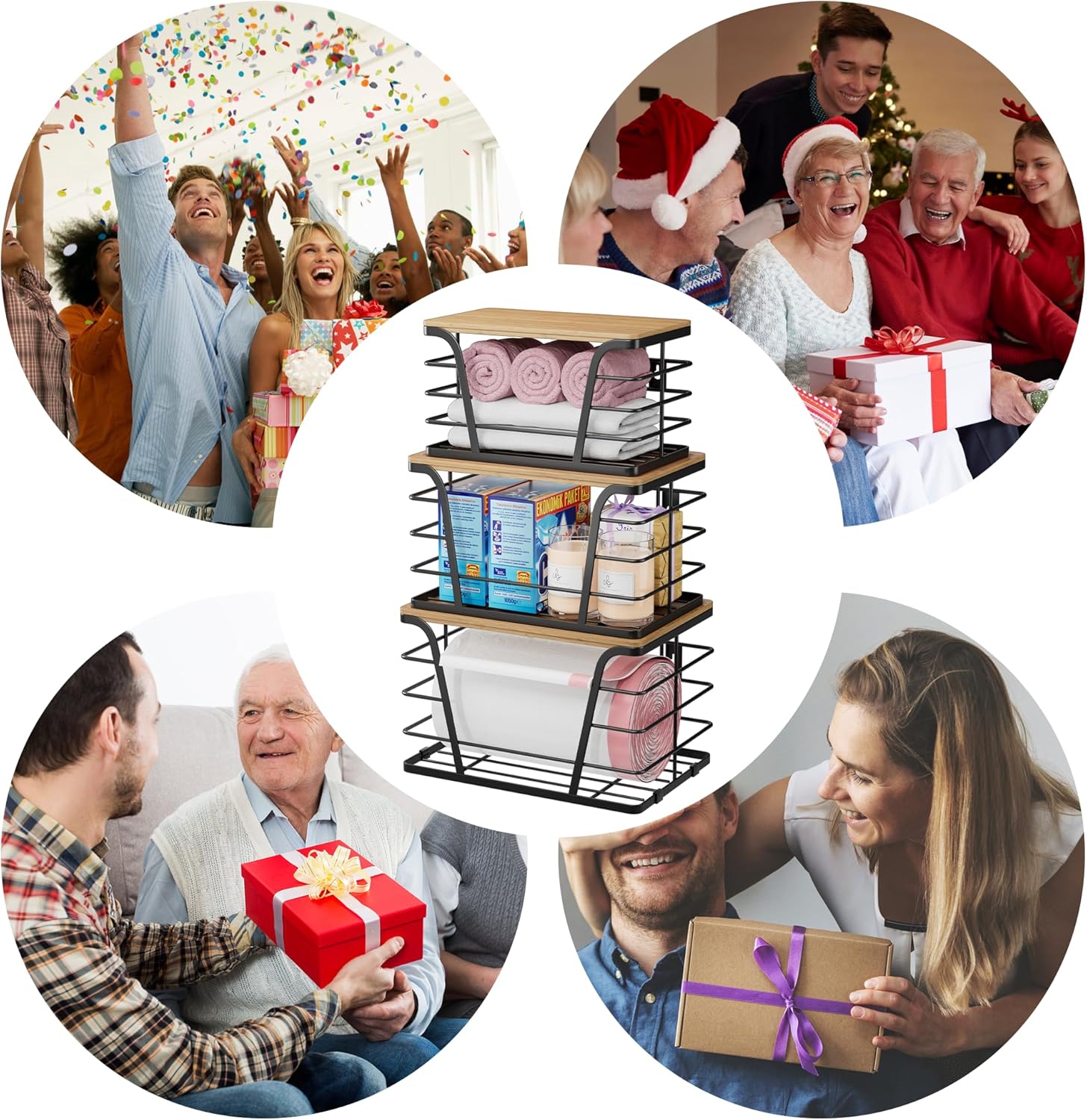3 Pack Stackable Pantry Organizer, Trash Bag Dispenser Under Sink, Kitchen Organization and Storage, Kitchen Counter Organizer, Black
