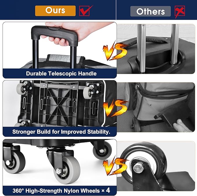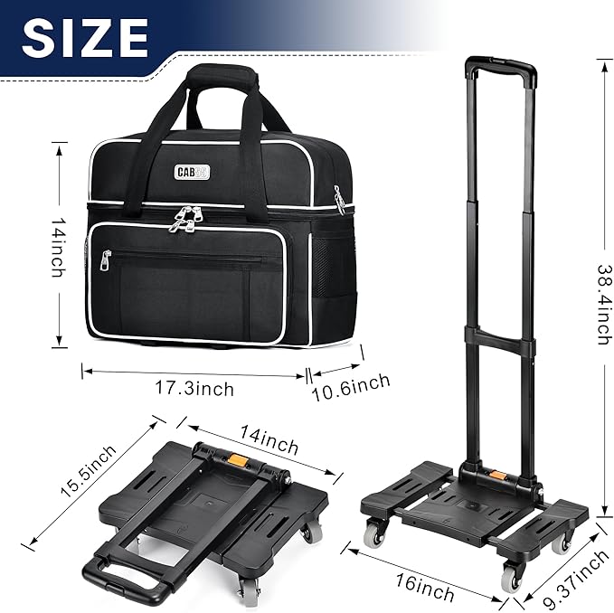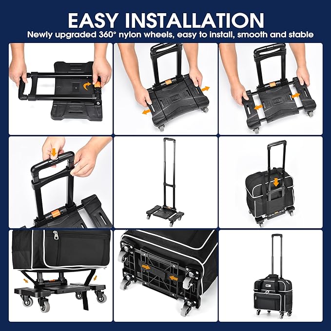 • ★ PREMIUM QUALITY: Newly upgraded 4-wheel folding truck with 360° high-strength nylon wheels, it provides a smooth, bump-free ride for your bowling ball and sneakers. Easy to fold for storage.