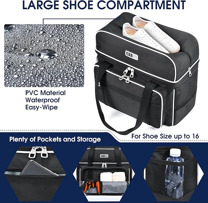 CAB55 2 Ball Bowling Bag with 4 Wheels, Double Bowling Ball Bag with Separate Shoe Compartment, (Up To US Men Size 16), and Multiple Multifunctional Accessory Pockets