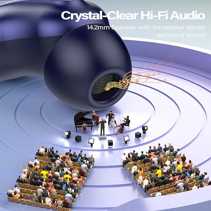 • Bluetooth 5.4 with Instant Auto-Pairing:Featuring the latest Bluetooth 5.4 chipset, the Bluetooth D20 Wireless headphones offers ultra-stable, low-latency connections. Enjoy instant one-step pairing—just open the case and the earbuds automatically connect to your last device. With strong anti-interference capabilities and a wireless range of up to 15 meters, you can move freely around your home or relax in bed without losing audio quality.