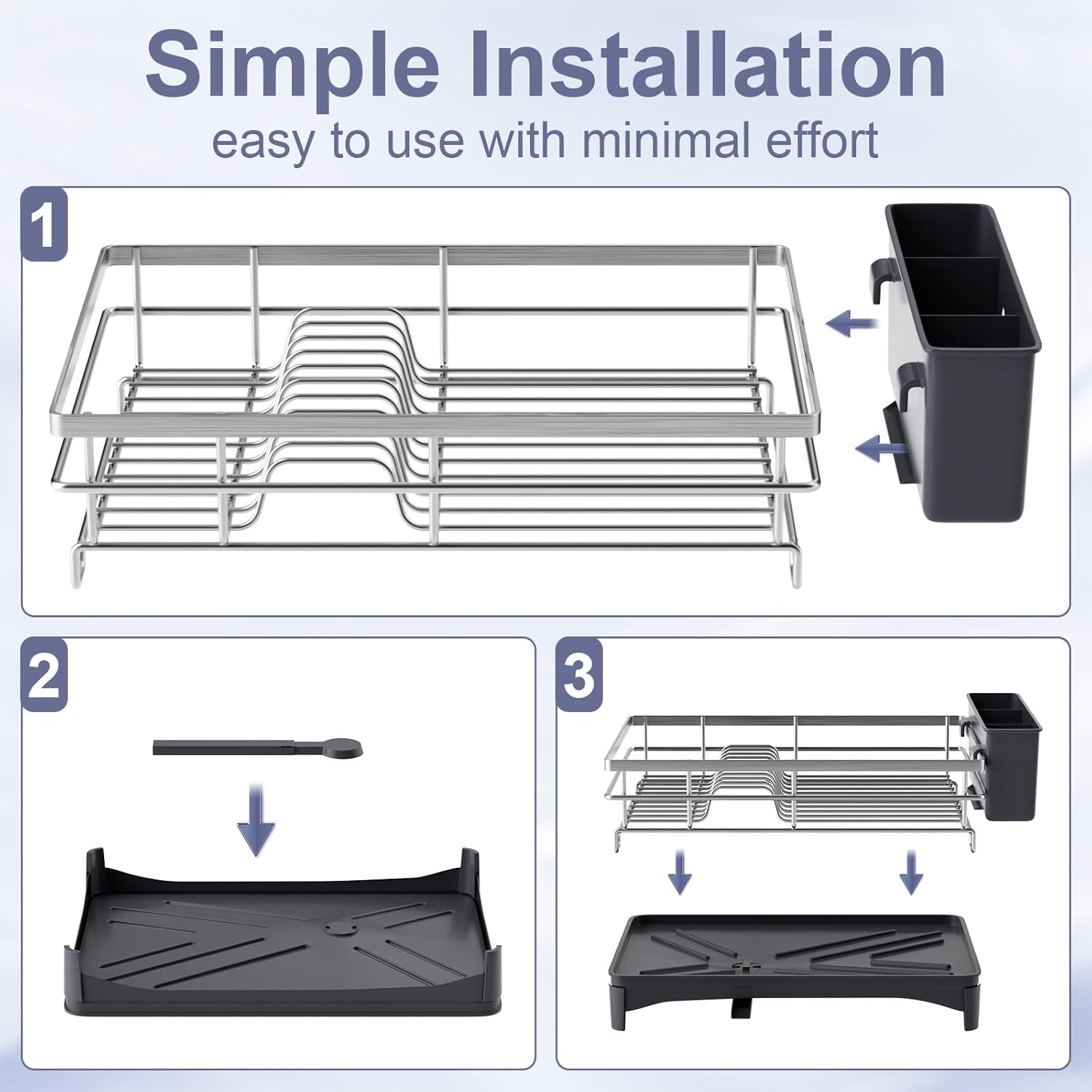 - Space-Saving Design: This stainless steel cutlery rack provides plenty of air-drying space for cutlery, utensils and more on your kitchen counter