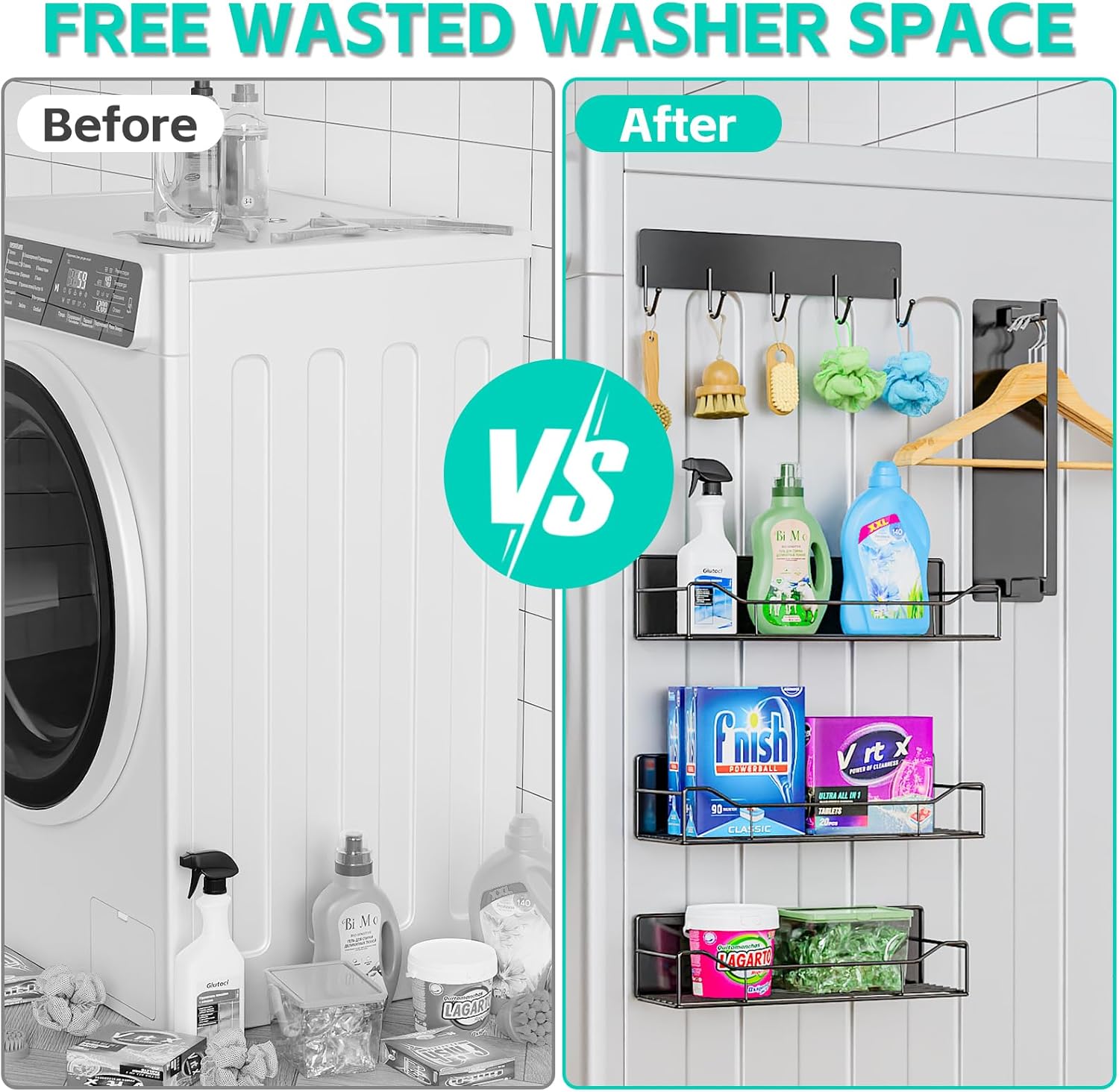 - ✅【Strong Magnetic Force & Super Load-bearing】Our magnetic shelves uses high-performance magnets that firmly adhere to any metal surface without displacement. With excellent load-bearing capacity, it can safely carry a variety of detergents and kitchen supplies, and it remains stable when the washing machine is in operation. No drilling or complicated installation process is required. Add more harmony and convenience to your family life!