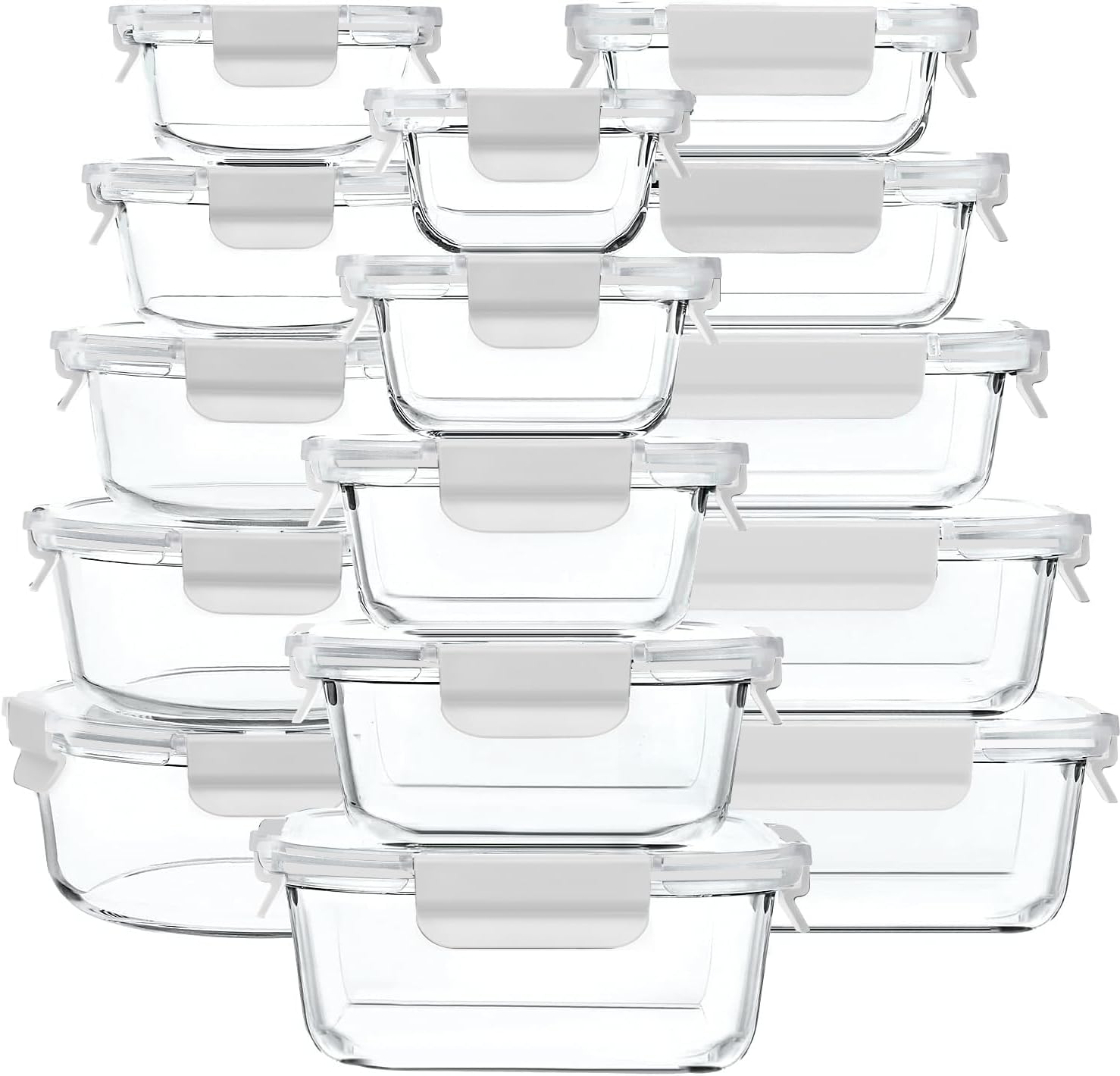 GENICOOK 30 Pieces Glass Food Storage Containers with Snap Locking Lids,Glass Meal Prep Containers Set - Airtight Lunch Containers, Microwave, Oven, Freezer and Dishwasher White