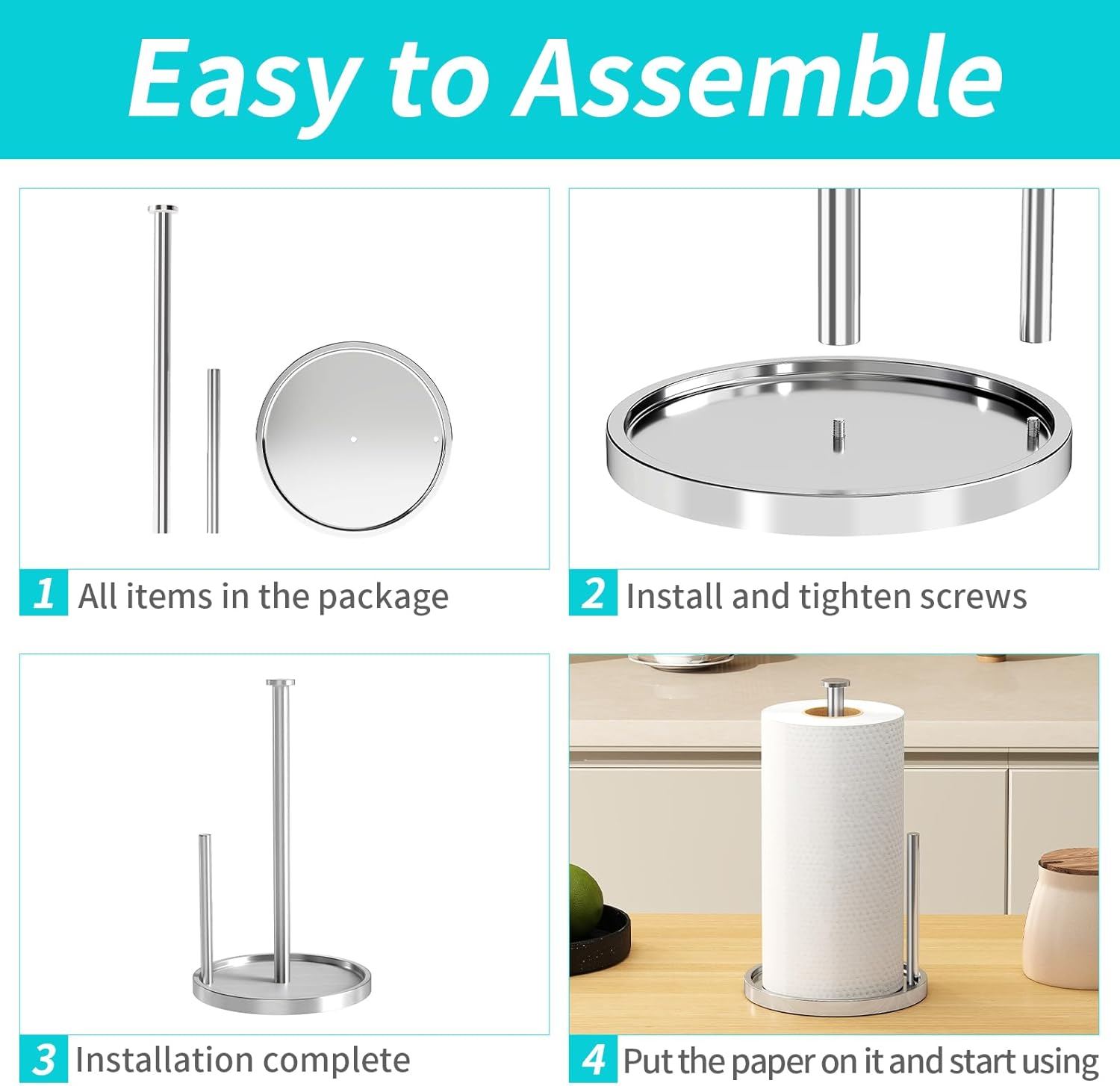 - [Stylish and Sturdy] This kitchen modern paper towel holder is made of high-quality metal material, and the surface is rust-proof and waterproof, which is durable. The simple and modern style highlighted by the gleaming chrome color is suitable for matching any decoration, saving space and adding style