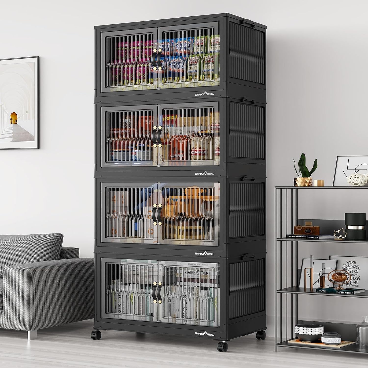 - 【5 Mins Easy Assembly & Warm Tips】The stackable storage bins open front only take 5 minutes to assemble the entire storage cabinet. Thanks to the foldable and stackable design, Broview v8 stackable storage bins can be disassembled and folded at any time when not in use. Warm Tips: Currently only 120QT black come with multi Lid, other need to be purchased separately.