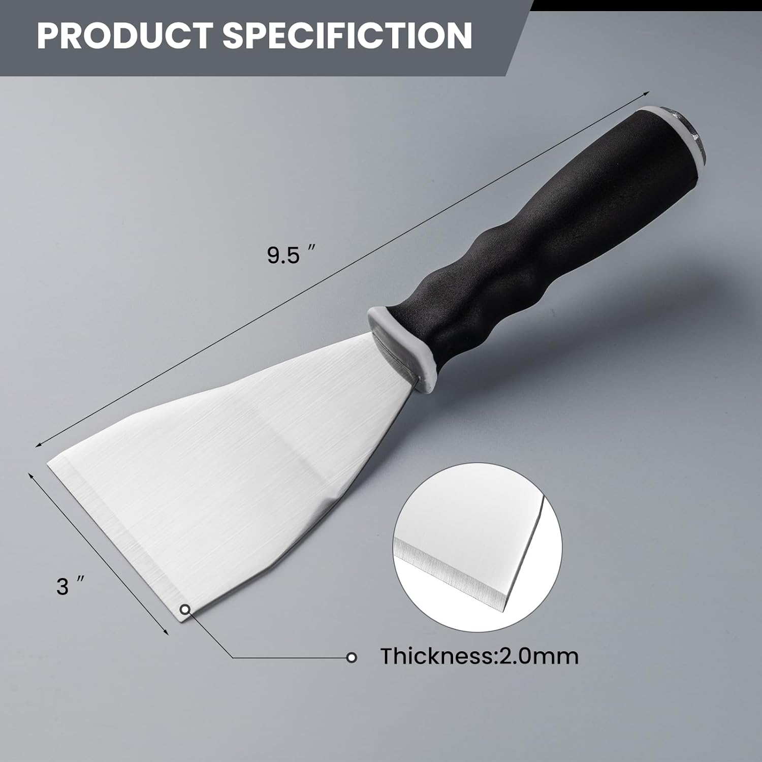 - Comfortable Handle: Spackle knife has anti slip treatment that is comfortable to hold, ergonomic design of rubber handle is more suitable for long time remove paint project