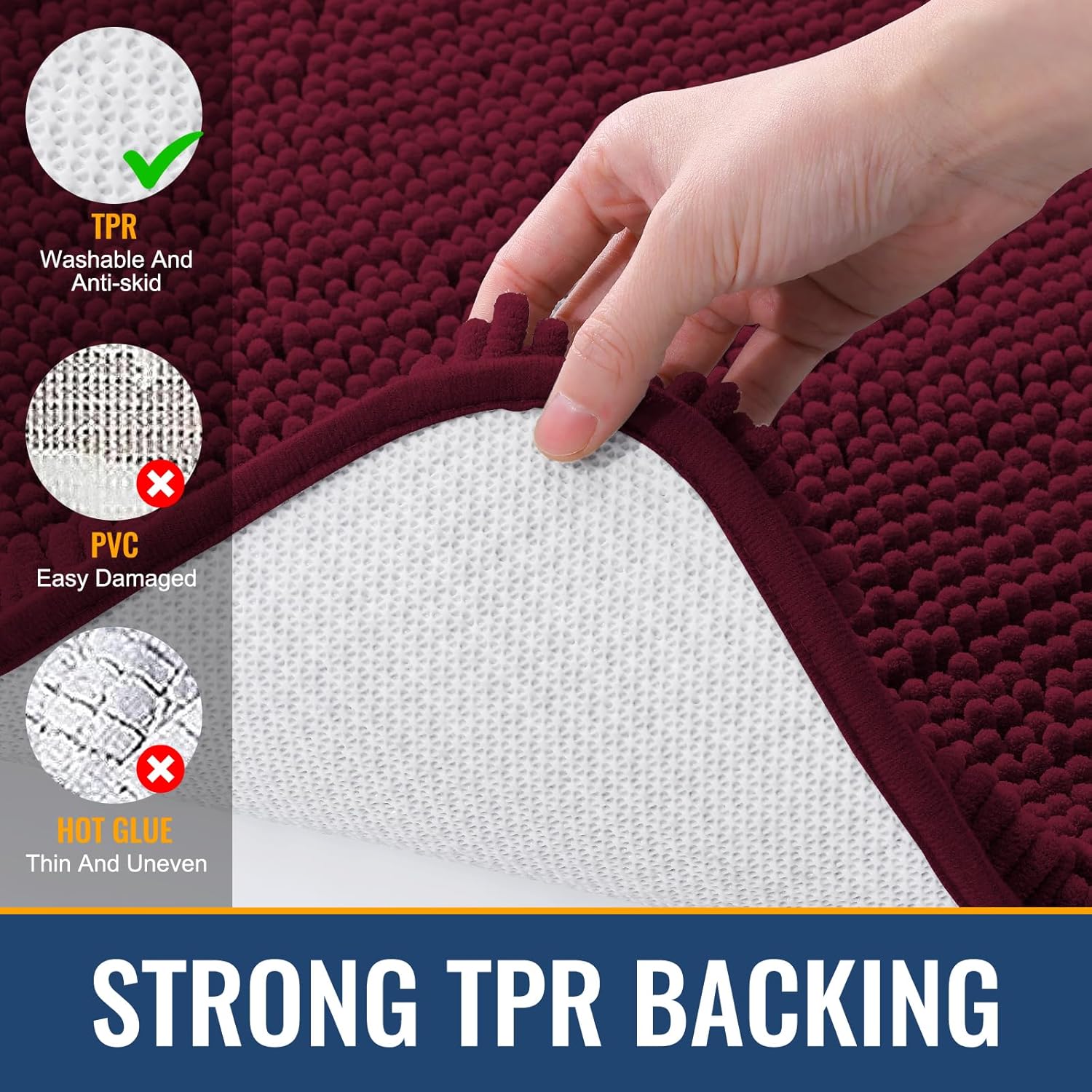 - Non-Slip TPR Backing: Our bathroom mat features a textured rubber backing that provides excellent grip on bathroom tiles, ensuring safety. Important: Place on CLEAN DRY FLAT FLOOR ONLY to avoid slipping. Keep the rug's bottom dry at all times.