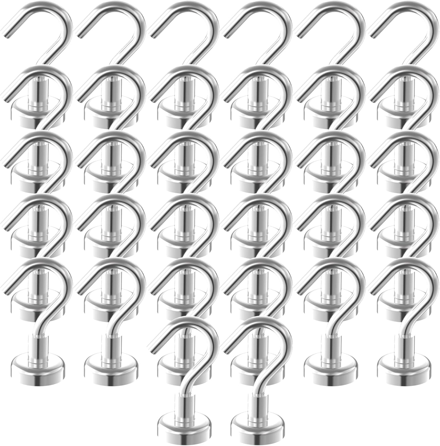 Heavy Duty Magnetic Hooks 5/8" Magnetic Base,25lbs Vertical Pull Force-32Pack Super Strong Rare Earth Magnet Hook,Strong Cruise Hook for Hanging,Magnetic Hanger for Cabins,Grill,Kitchen