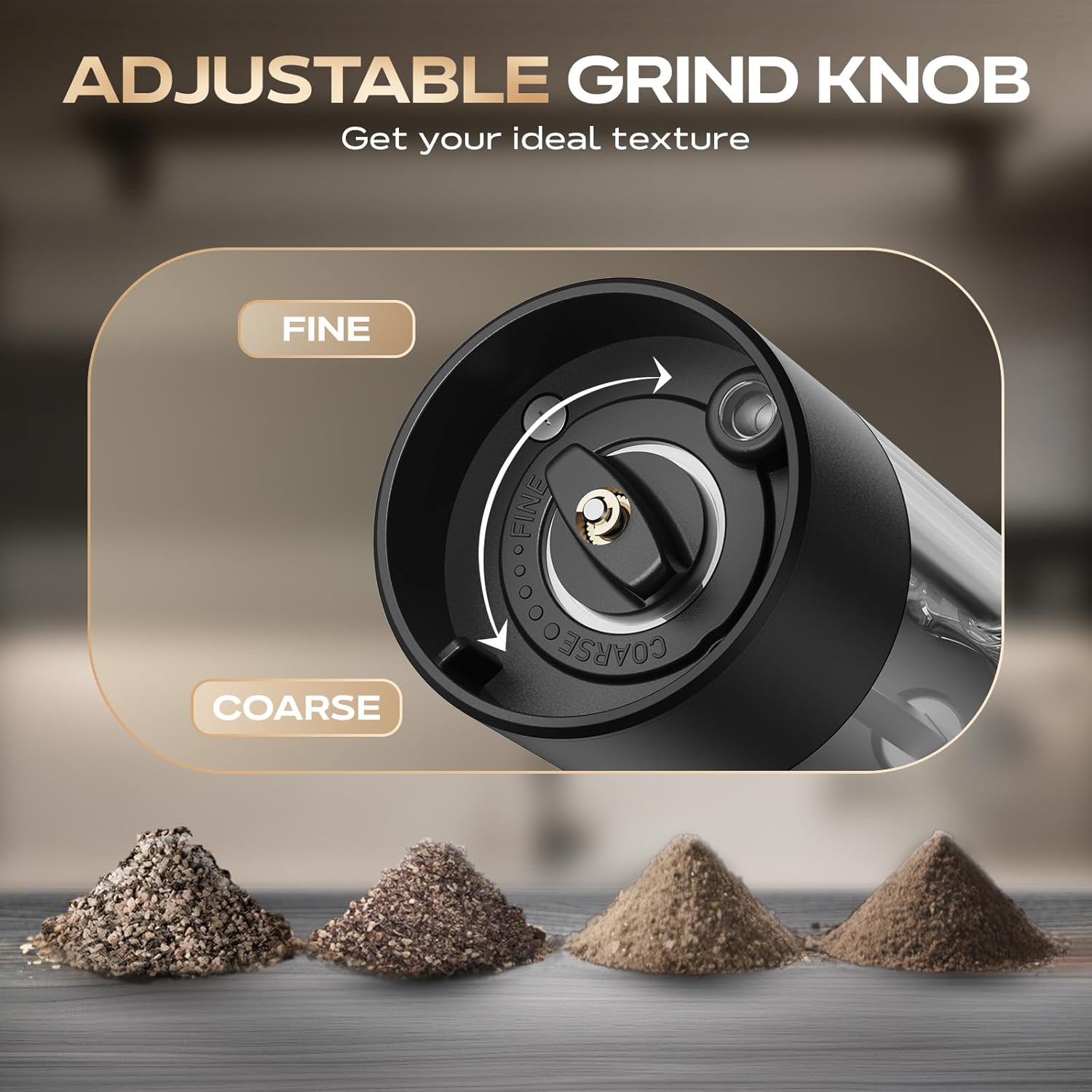 - 【Adjustable Grind + See-Through Design】Twist the bottom knob for your perfect texture—nails steaks, salads, everything in between, elevating every bite. 360° clear container shows spice levels at a glance. Wide opening makes refills easy, cleaning fast