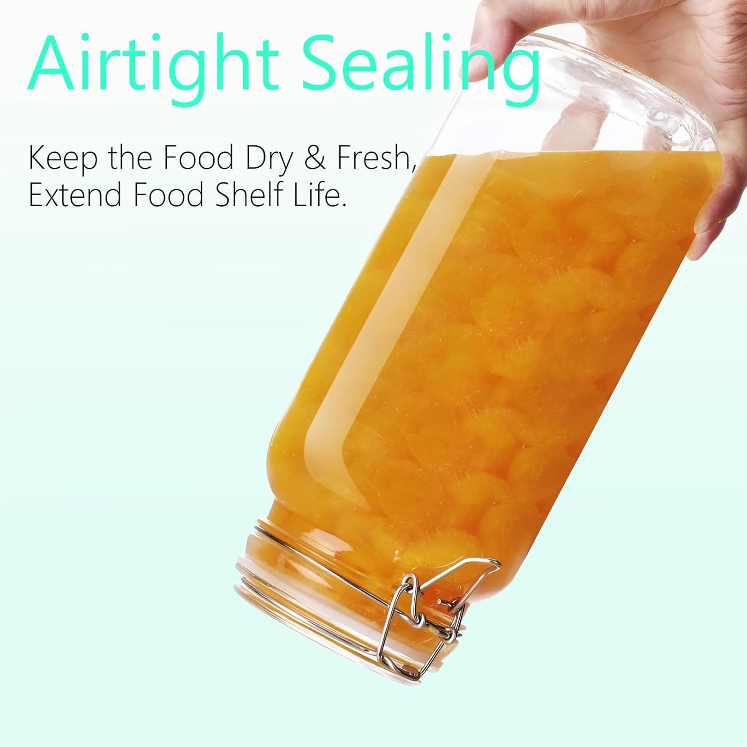 - 2.Airtight Seal Lids — Glass jars with airtight lid is made of food-graded glass; Each kitchen canisters for countertop is well sealed, equipped with silicone gasket and a stainless iron locking clamp to make sure your food stay clean and fresh in storage