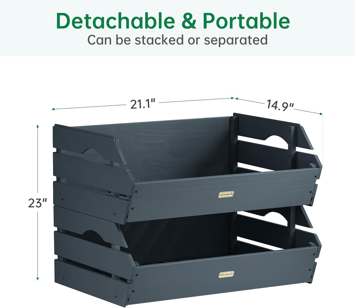 HABAU Wood Potato Onion Storage Bins - Wooden Stackable Produce Basket - Fruit Vegetable Storage for Kitchen Pantry Organization, Set 2 Pieces