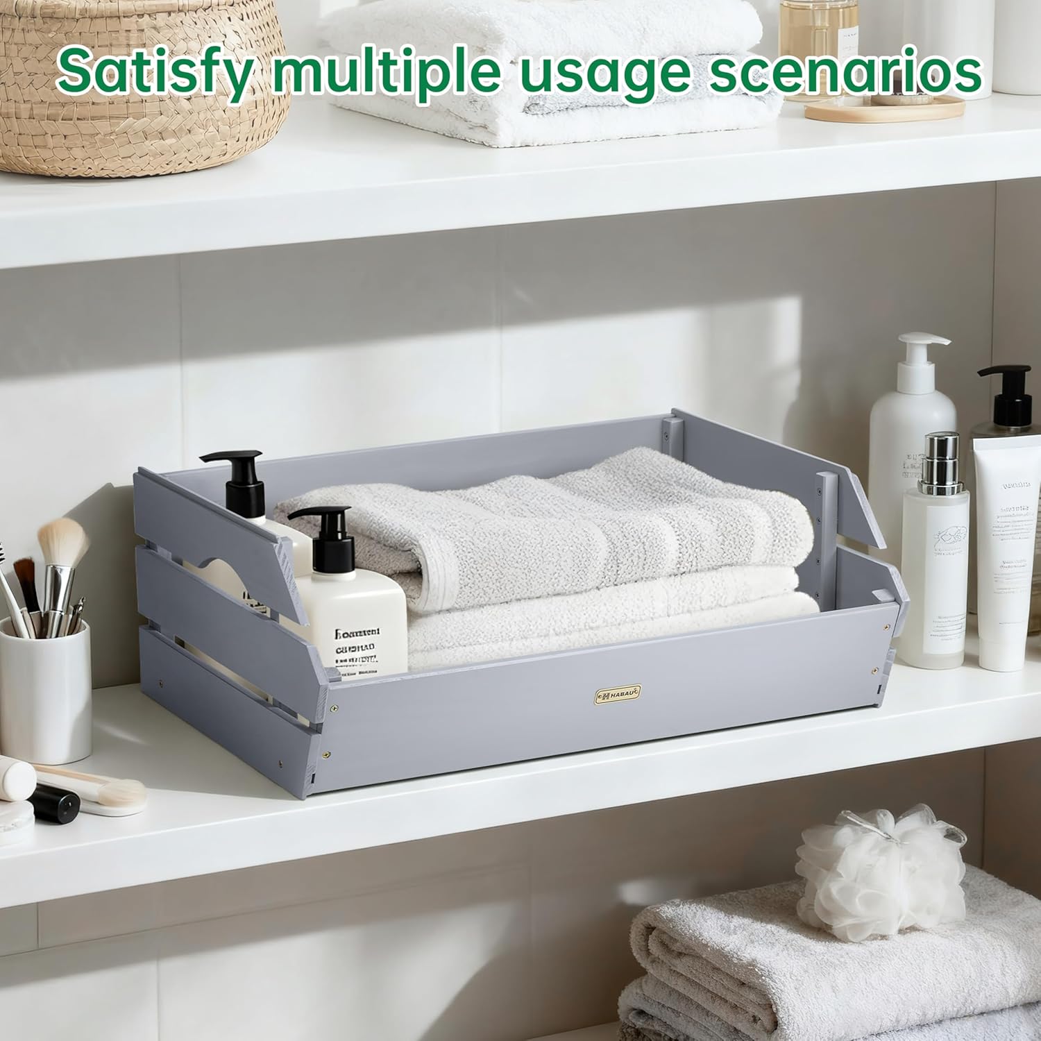 HABAU Wood Potato Onion Storage Bins - Wooden Stackable Produce Basket - Fruit Vegetable Storage for Kitchen Pantry Organization