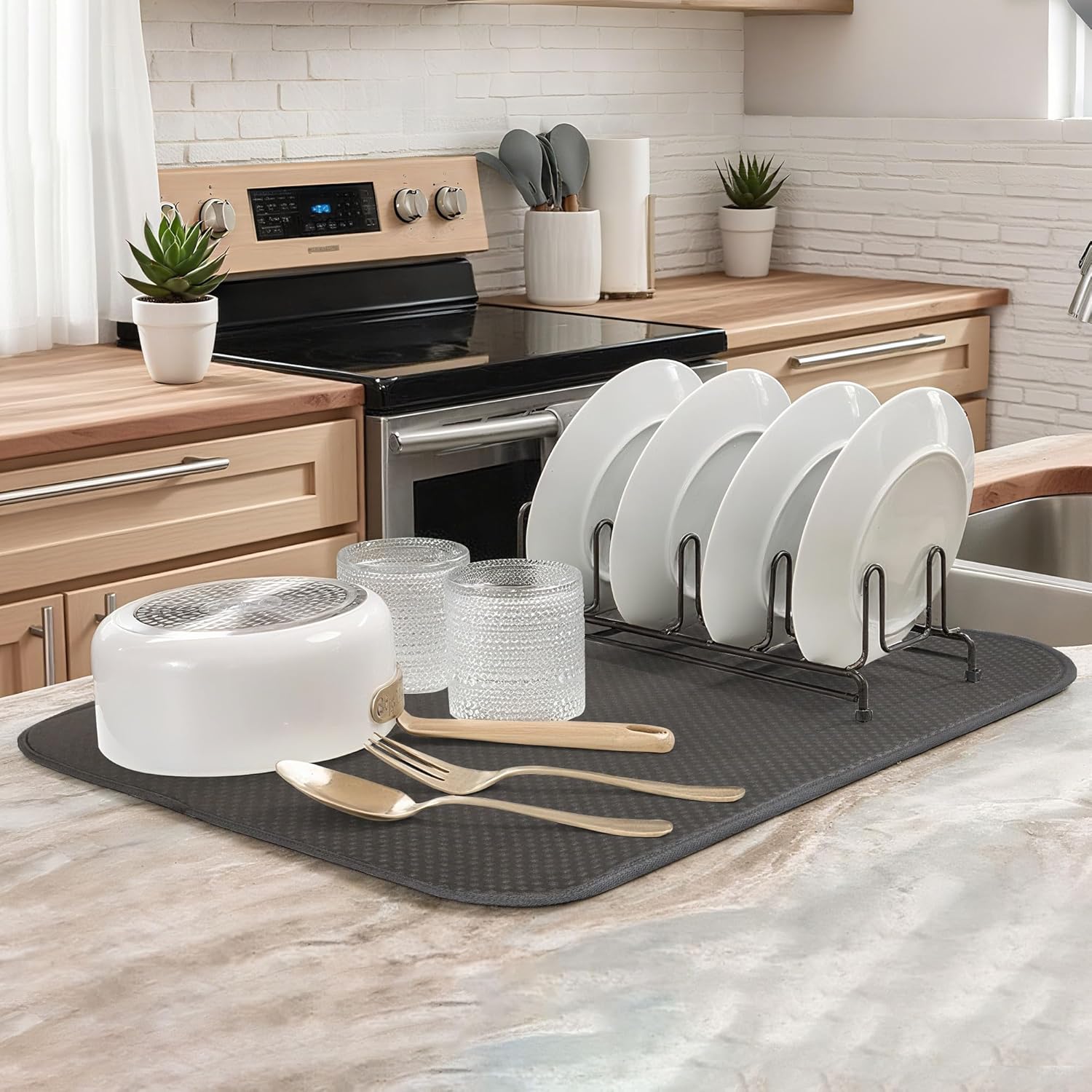 - Neutral Dark Gray – Blends with Any Kitchen: Includes two 17” x 24” dish drying mats in elegant dark gray—subtle, stylish, and ideal for everyday use