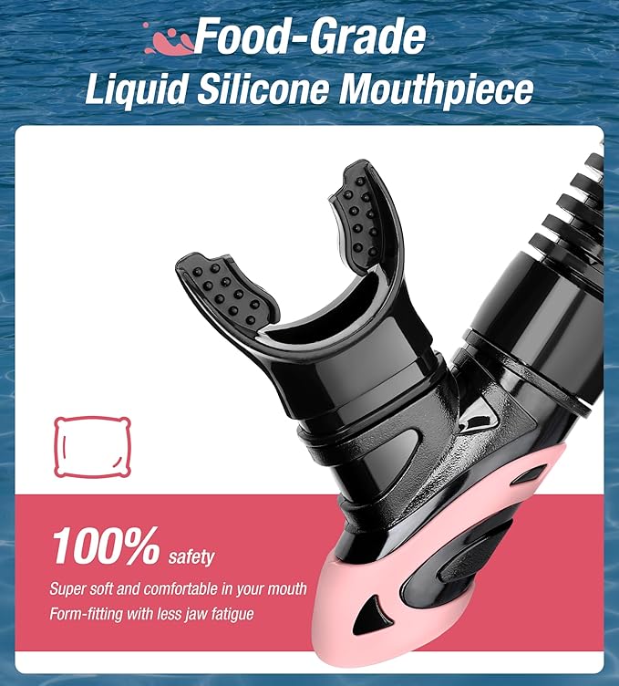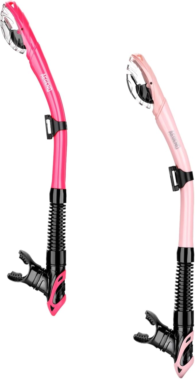 • Advanced top dry valve and splash guard: Aegend Dry snorkel profiled “paddle” dry top automatically closes when submerged, not allowing water entry. Even waves crash overhead, the splash-guard will prevent water from coming into the snorkel. Unlike the float ball valve which gets lodged easily by small sands or kinds of stuff, our new design valve won't be stuck, which give you comfortably breath.
