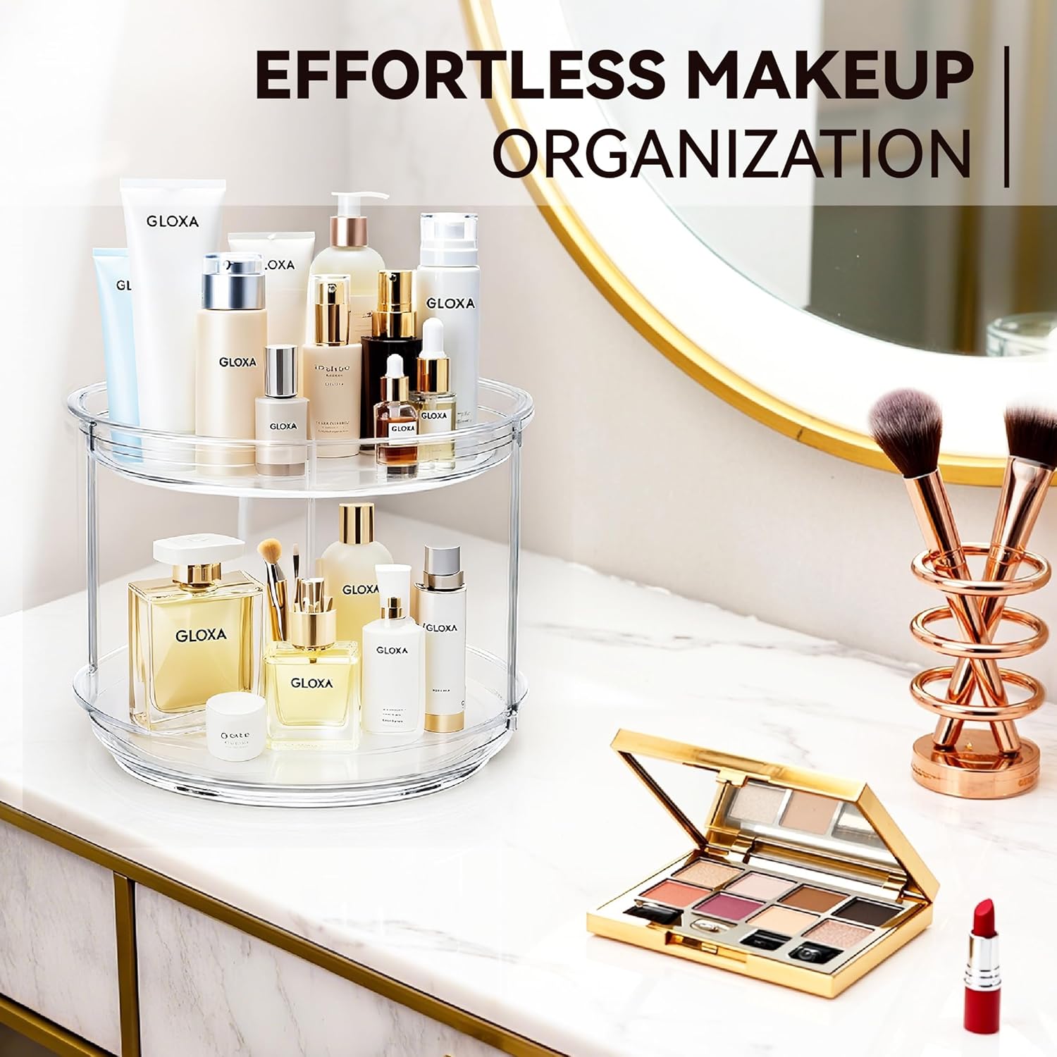 - Maximize Storage Capacity: Effortlessly organize your kitchen pantry, bathroom vanity, medicine cabinet or makeup countertop with GLOXA 2-tier lazy Susan organizer. It doubles your storage area, perfectly storing seasonings, spices, cans, makeup products and more, all while taking up minimal counter or cabinet space.