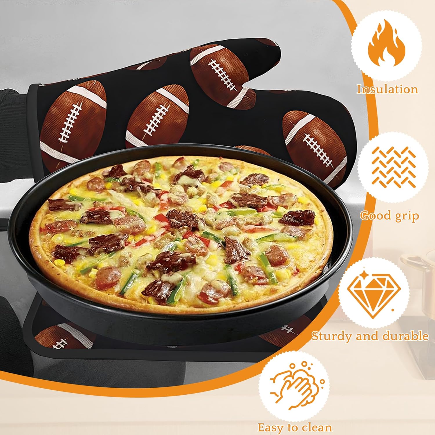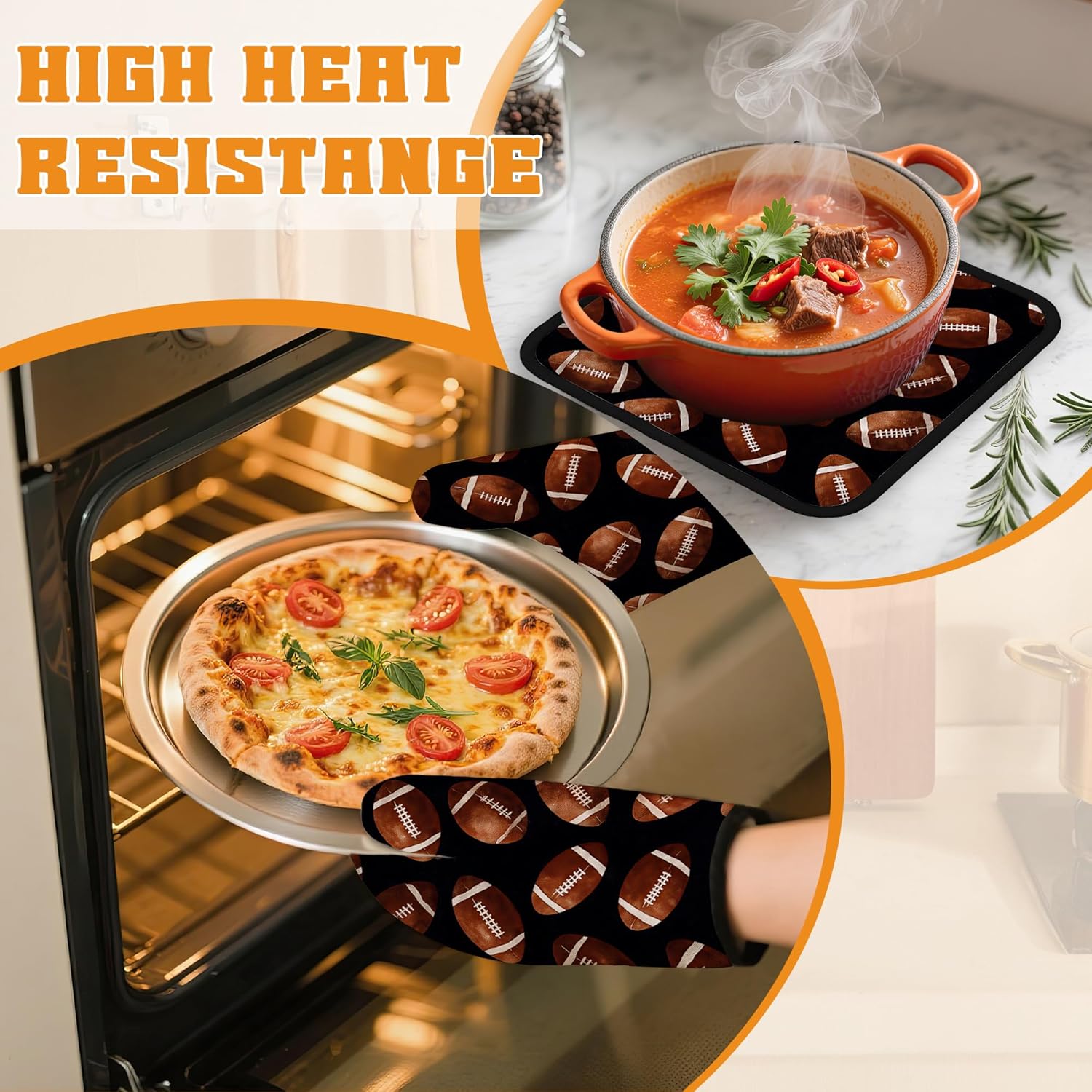 American Football Oven Mitts and Pot Holders,Heat Resistant Oven Mitts Gloves and Pot Holder for Home Kitchen Decorations Cooking Baking BBQ Gifts,Set of 4