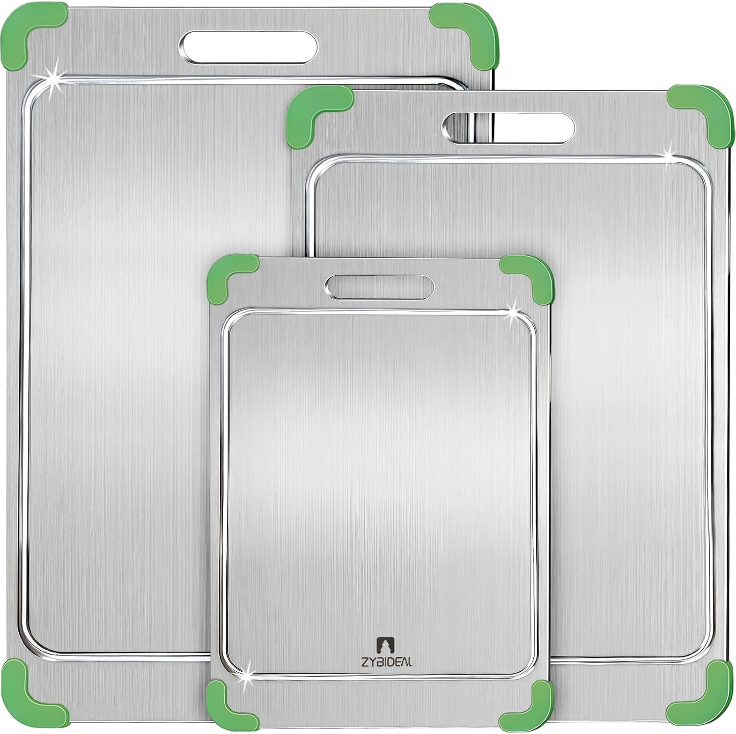 3Pcs 100% Pure Titanium Cutting Board with Grooves, Update Double Side Titanium Chopping Board, Silicone Anti-slip Stainless Cutting Boards Set for Kitchen, Green